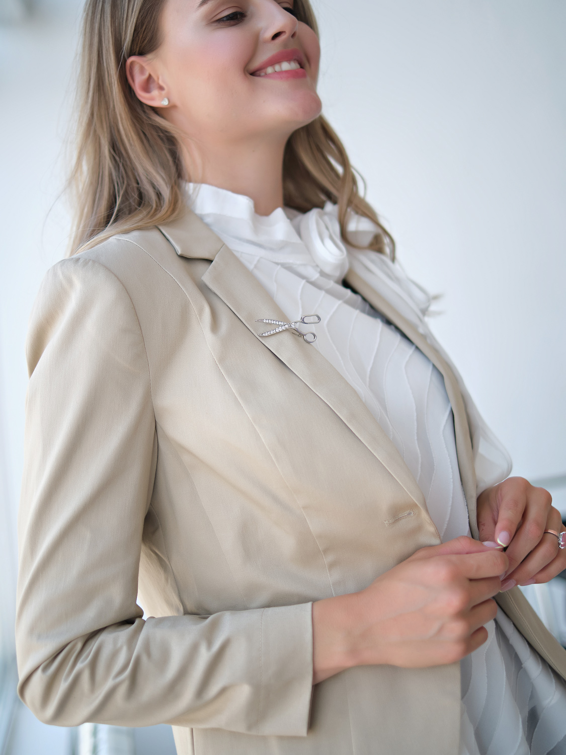 Оригинальная брошь в виде ножниц станет стильной деталью вашего образа. Брошь украшена стразами.