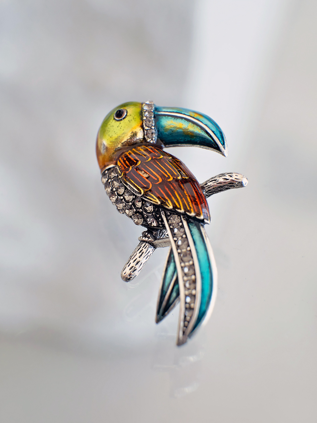 Стильная и яркая брошь в виде птицы – трендовый элемент для вашего образа. Брошь выполнена из комбинированных материалов, украшена стразами.