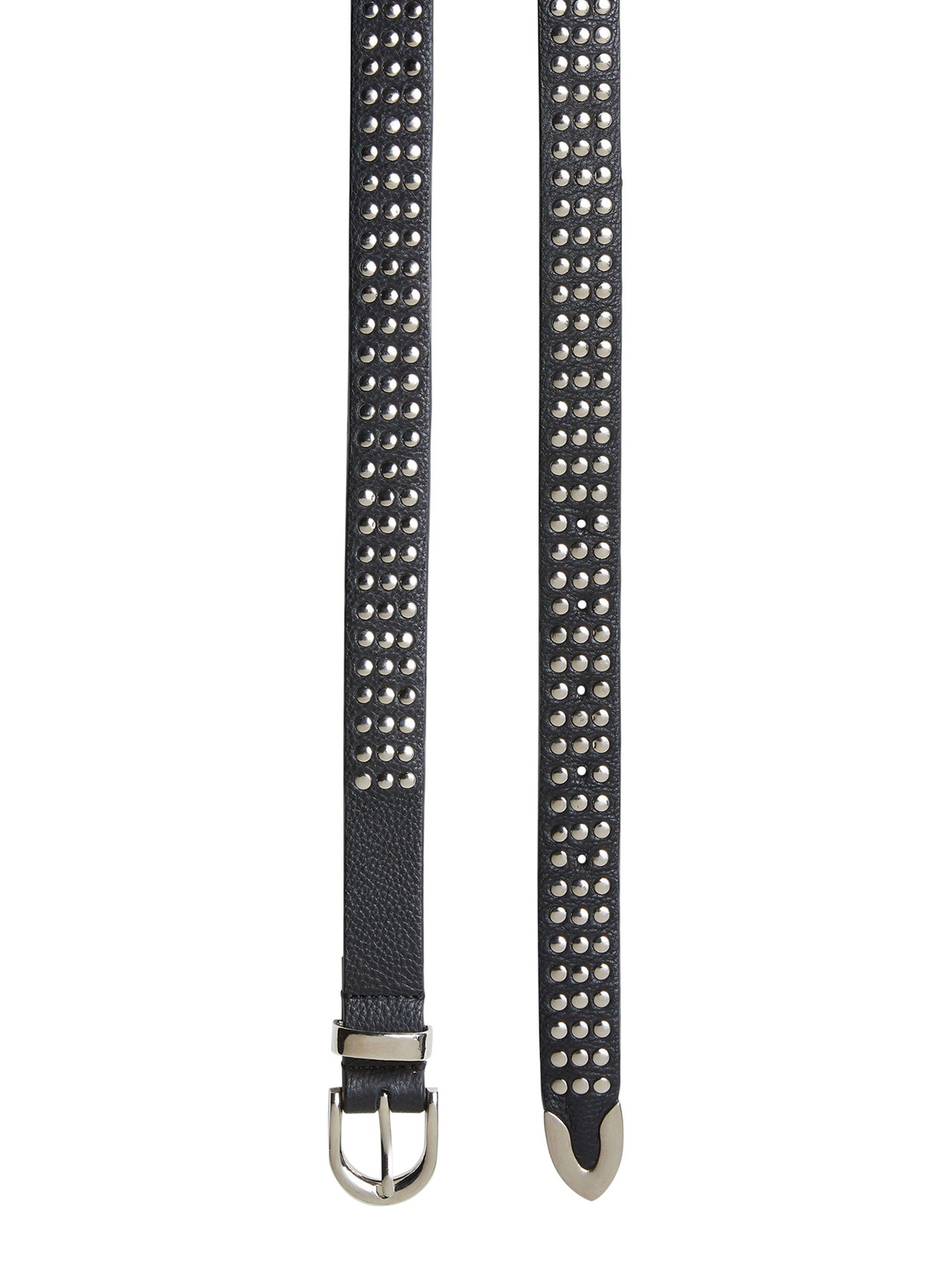 Ремень из натуральной кожи с металлическими заклепками подходит для разных нарядов и образов.