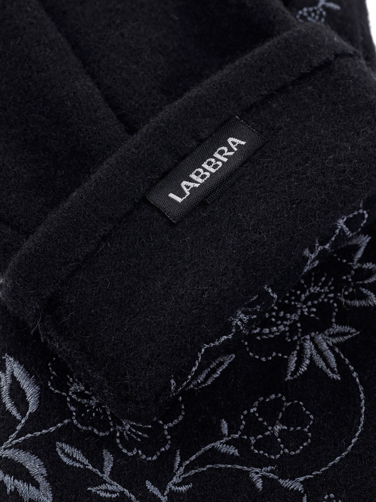 Модель без подкладки. Отделка - лицевая сторона украшена декоративной вышивкой. Длина манжеты от нижней точки большого пальца до края перчатки - 6 см. Длина пальцев - средняя.