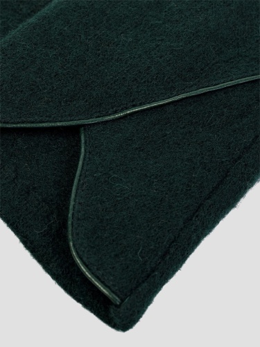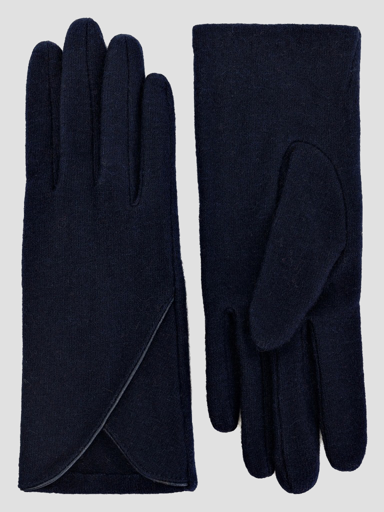 Модель без подкладки. Отделка - декоративный кант на манжете, расходящийся от линии разреза на лицевой стороне перчатки, выполненный из экокожи. Длина манжеты от нижней точки большого пальца до края перчатки - 6,5 см. Длина пальцев - средняя.