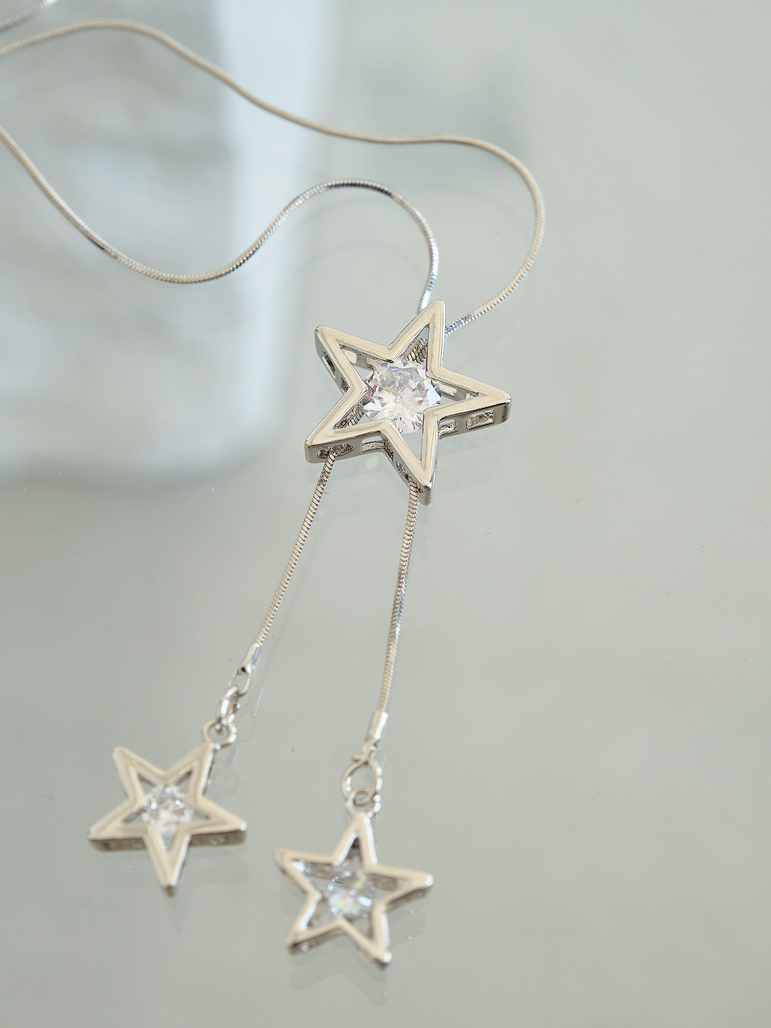 Украшение-подвеска в форме звезд. Изделие выполнено из комбинированных материалов с использованием горного хрусталя.