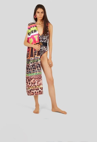 Мягкое хлопковое полотенце с модным принтом по всей поверхности.