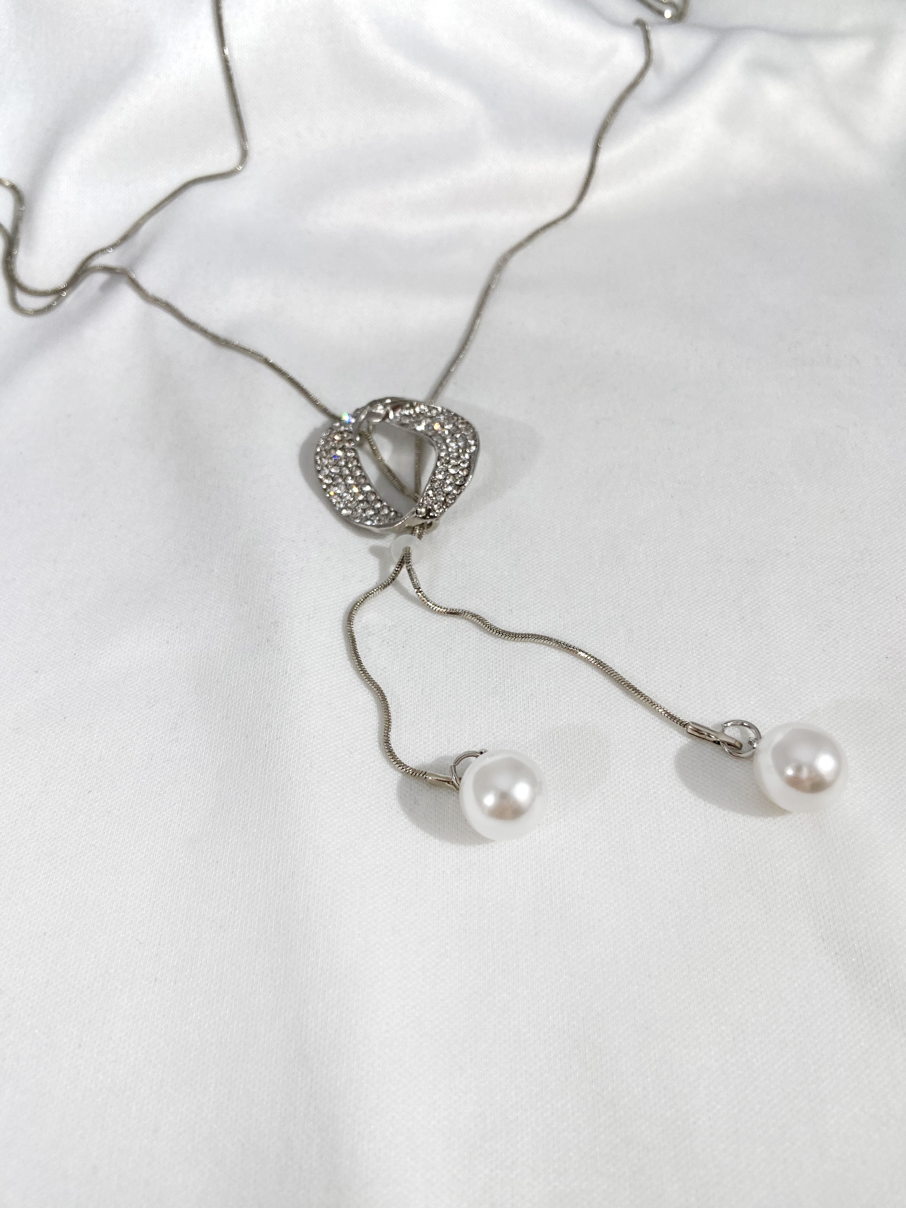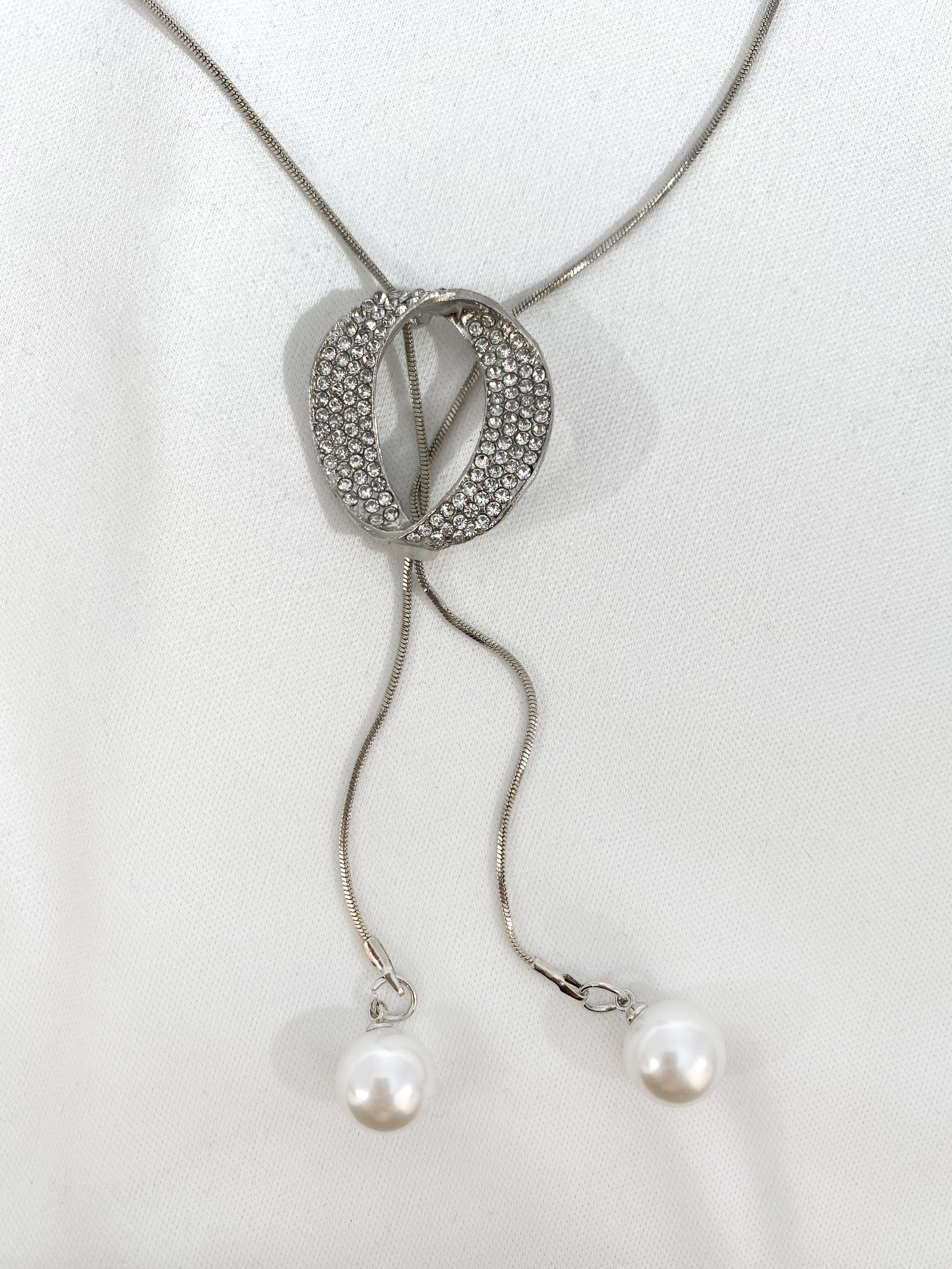 Длинное колье с акцентной подвеской - затяжкой и искусственным жемчугом