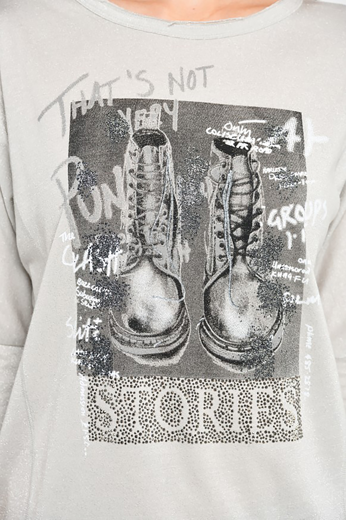 Свитшон свободного силуэта – практичный и стильный элемент повседневного стиля. Круглая горловина, втачной рукав 3/4 со спущенной линией плеча, широкие манжеты.