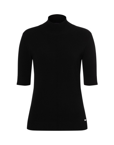 Приталенная водолазка. Горловина-воронка, рукава 1/2. Приятный к телу материал из вискозной смеси. Лаконичный дизайн делает эту водолазку универсальной, базовой вещью, которая подойдет к любому гардеробу.