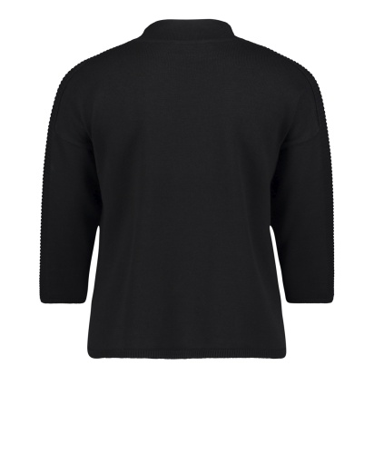 Джемпер прямого покроя - обязательная вещь в любом гардеробе! Горловина "воронка", рукава 3/4 со спущенным плечом. Яркая деталь дизайна - цветок, выполненный нитью контрастного цвета. Россыпь страз придает образу гламурный блеск. Материал из хлопковой смеси приятен к телу. Джемпер прекрасно сочетается с любым однотонным вариантом низа и любой обувью.
