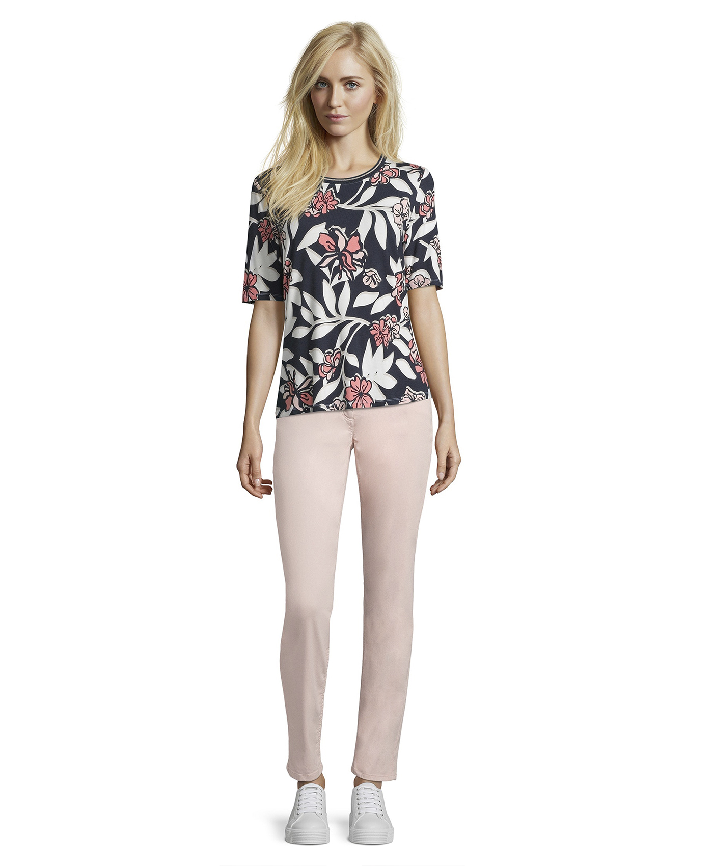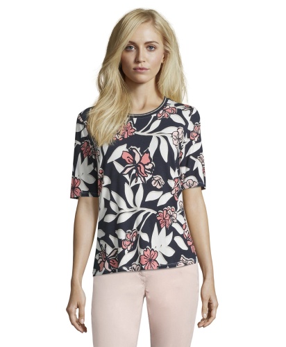 Цветочный принт - непреходящий тренд! Прямой покрой, круглый вырез горловины, рукава 1/2. Вискозная смесь приятна к телу и обеспечивает комфорт. Эта футболка идеально сочетается с любым однотонным низом и обувью.