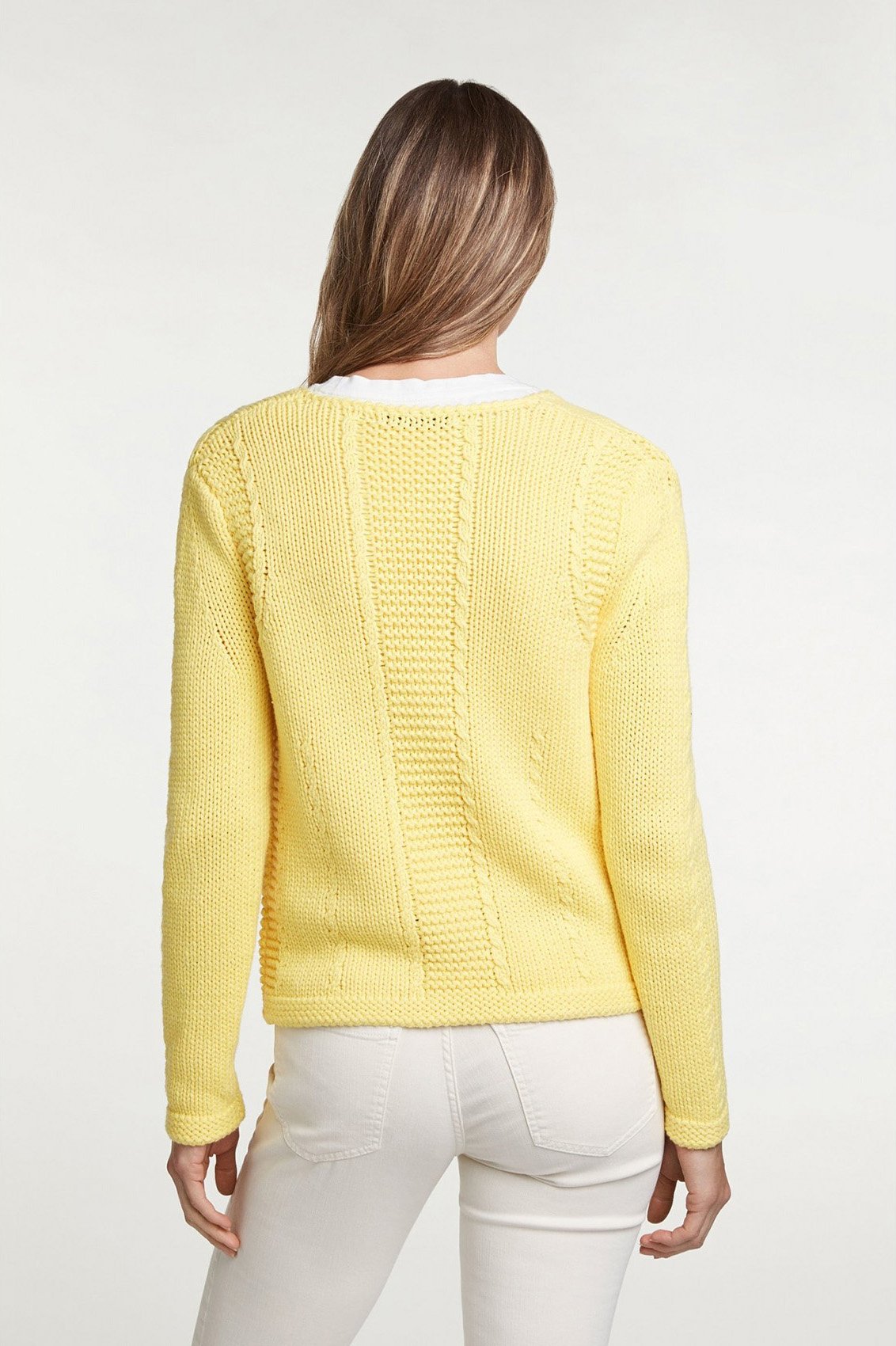 Яркий кардиган непременно обратит на себя внимание! Прямой покрой, длинные рукава, застежка на пуговицах. Крупная вязка с косами. Приятный к телу материал из смеси хлопка и полиакрила. Этот кардиган - модная теплая вещь, необходимая в любом гардеробе.