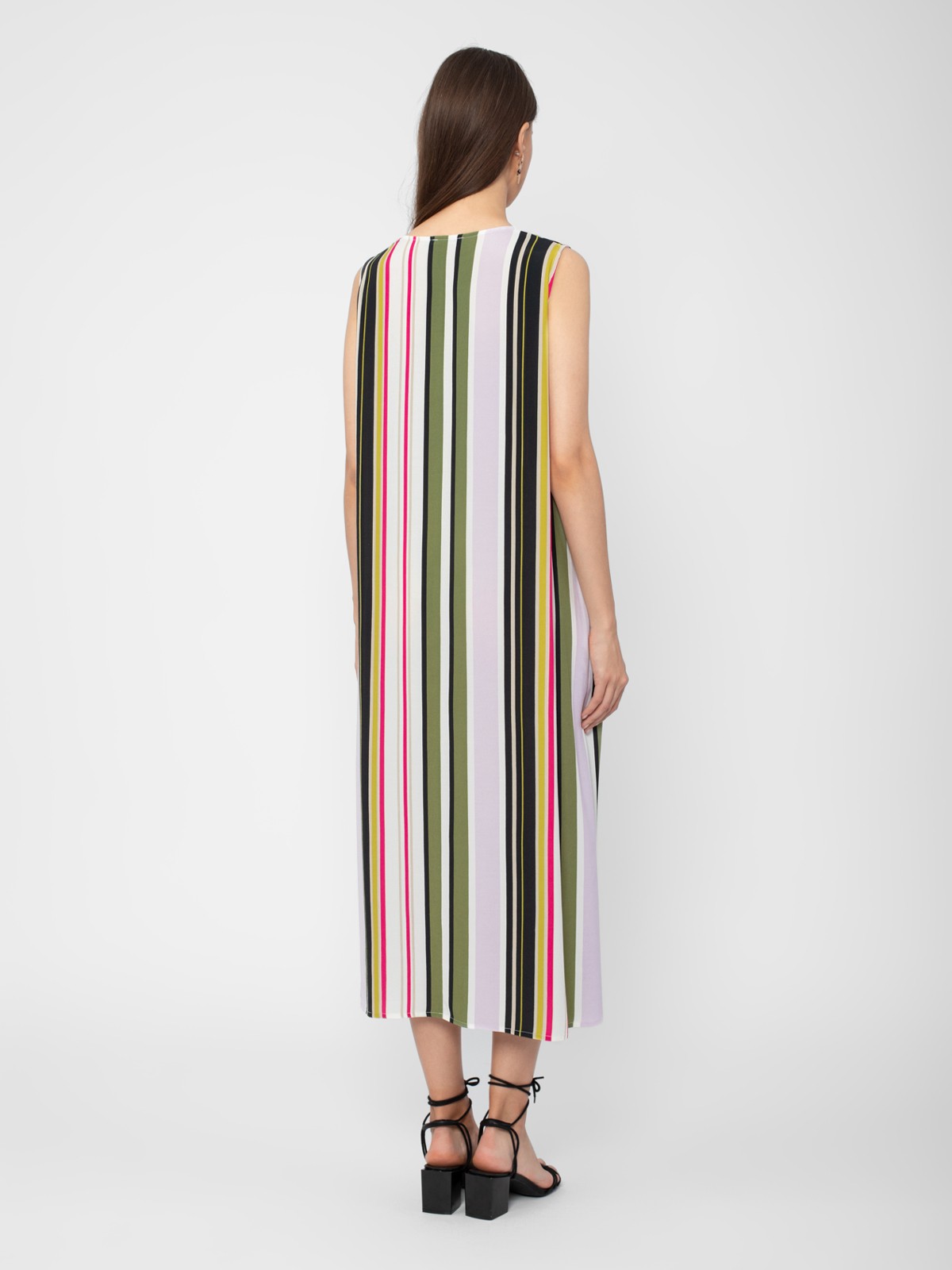 Платье из вискозы в принте полуприлегающего силуэта без рукавов с v-образным вырезом горловины.