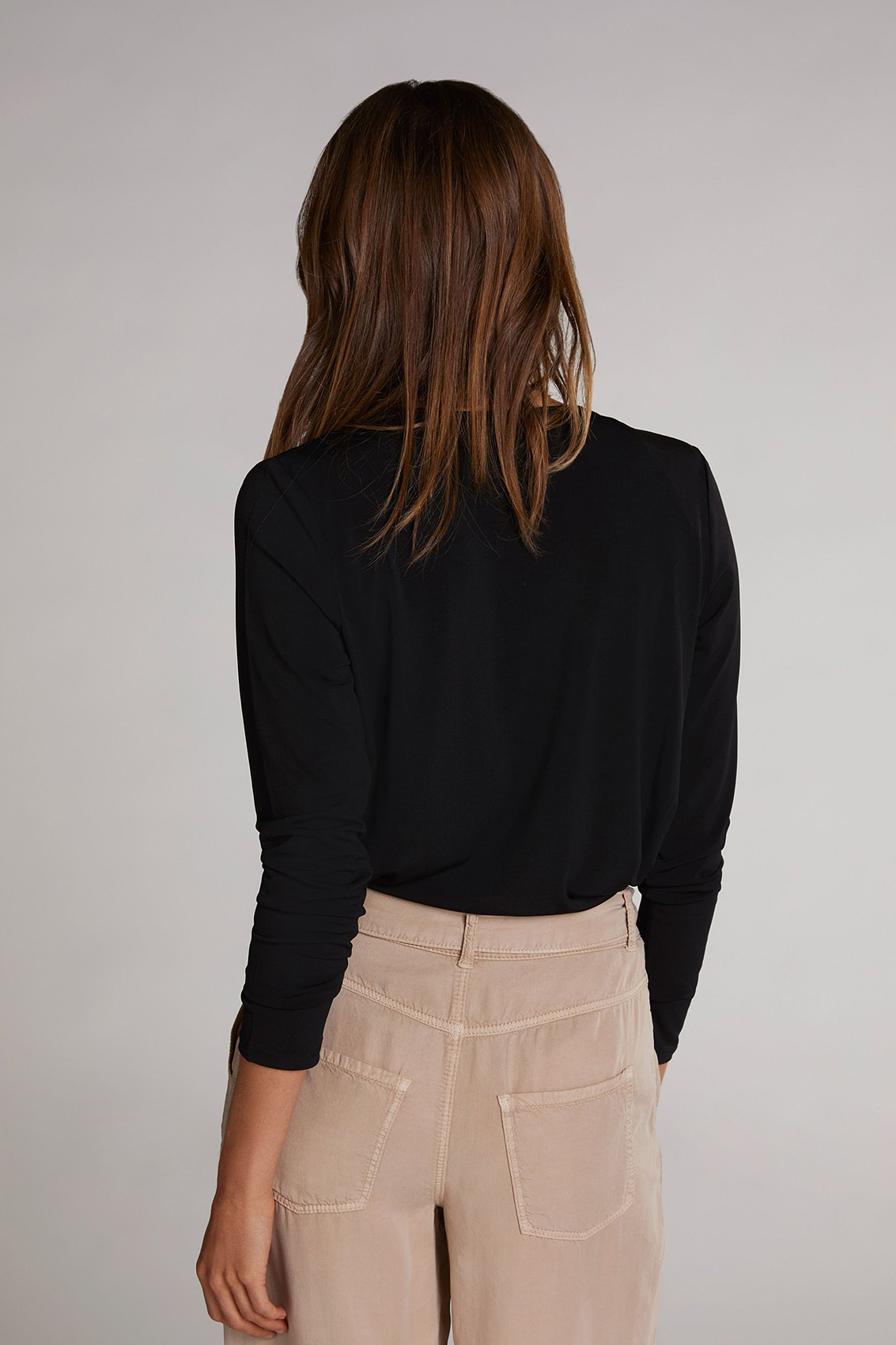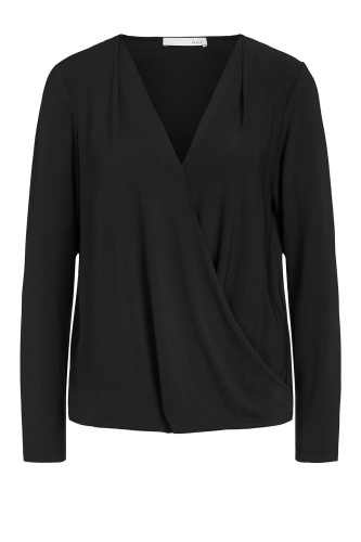Однотонная блуза прямого покроя - обязательный элемент базового гардероба. Втачные рукава полной длины. V-образный вырез с имитацией запаха создает элегантный и женственный образ.