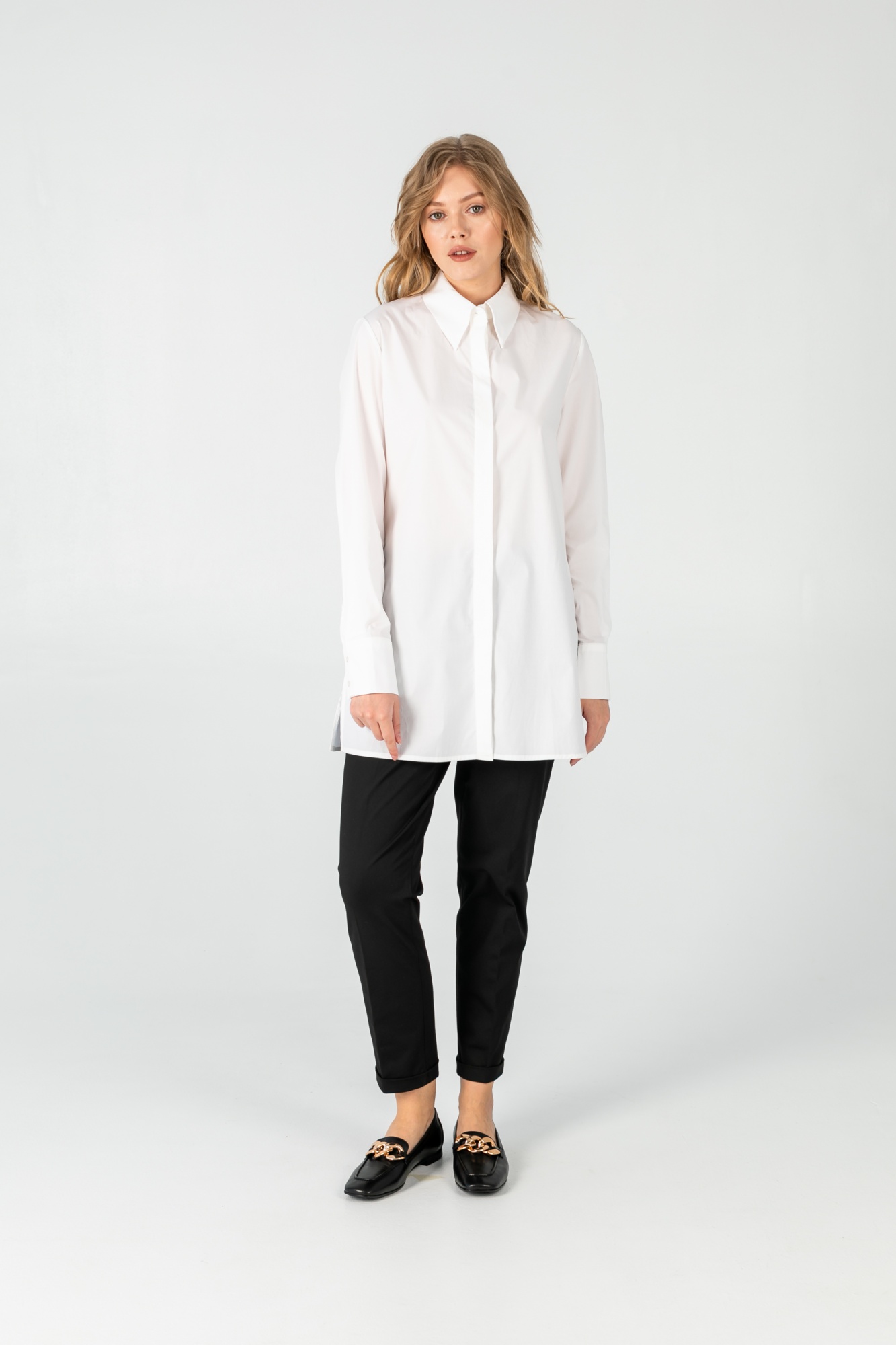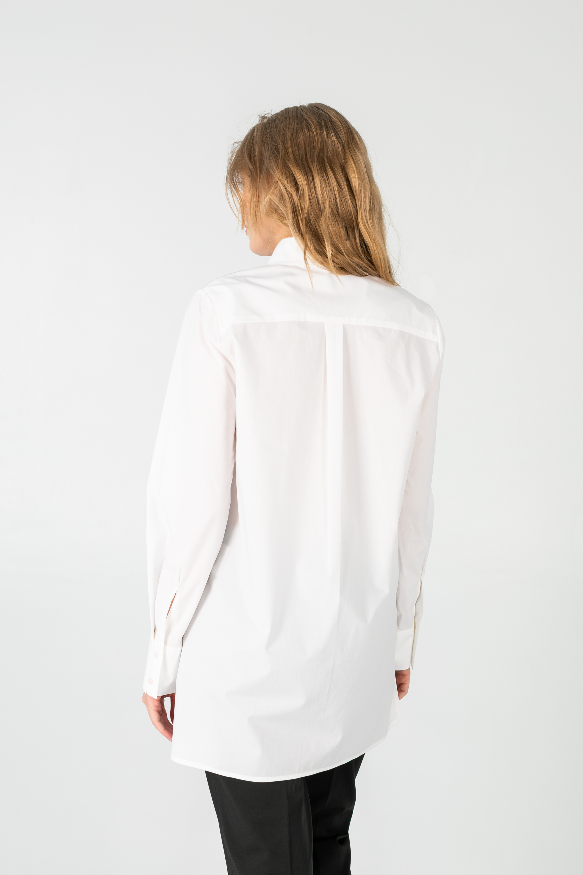 Классическая удлиненная оверсайз рубашка с защипом на спине.