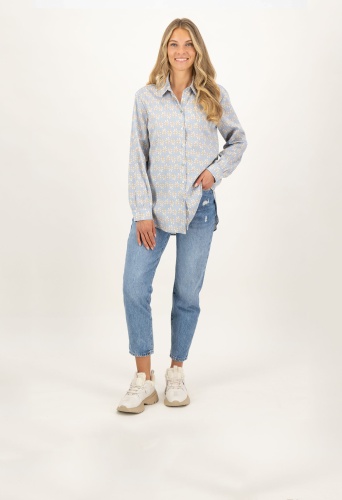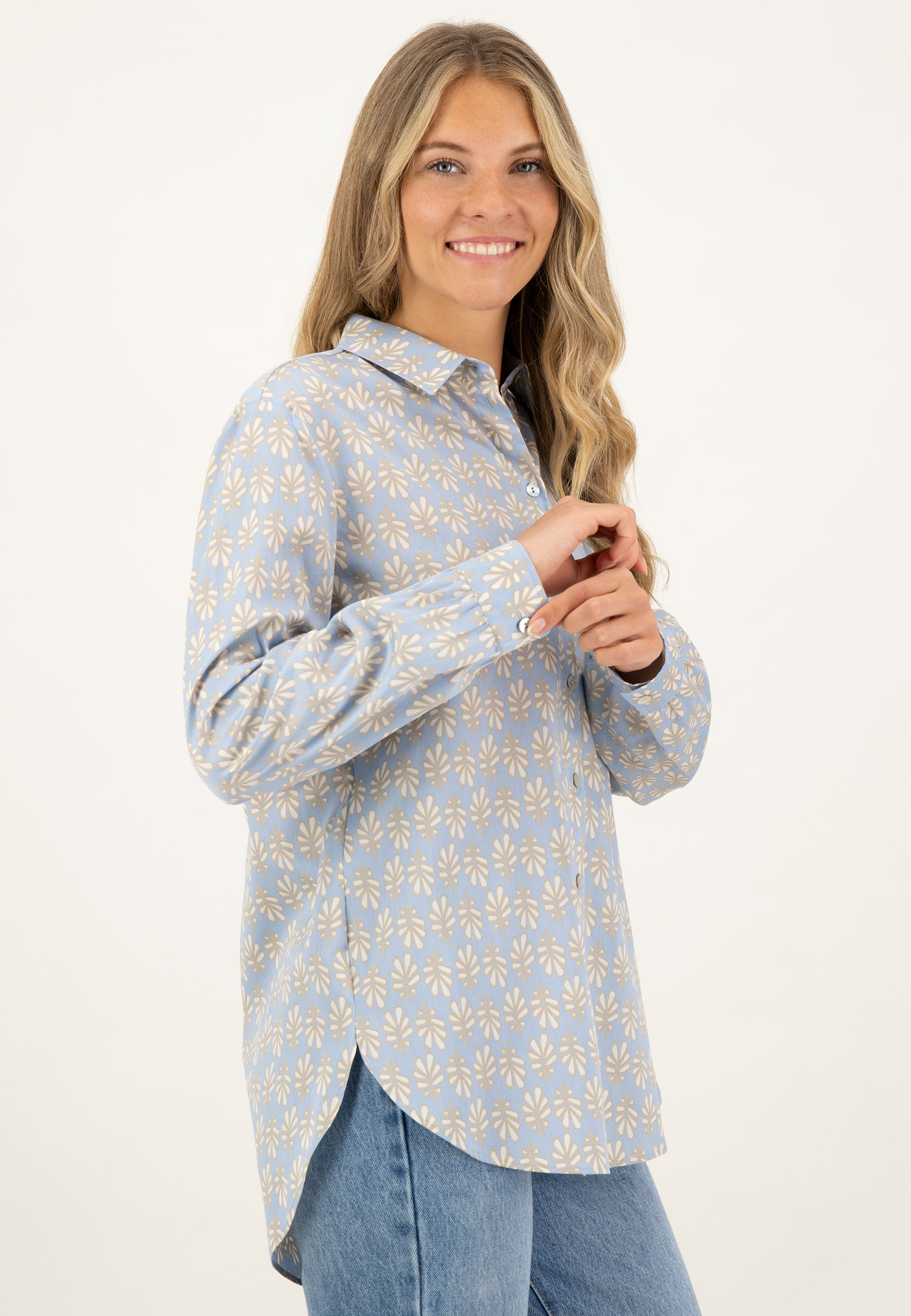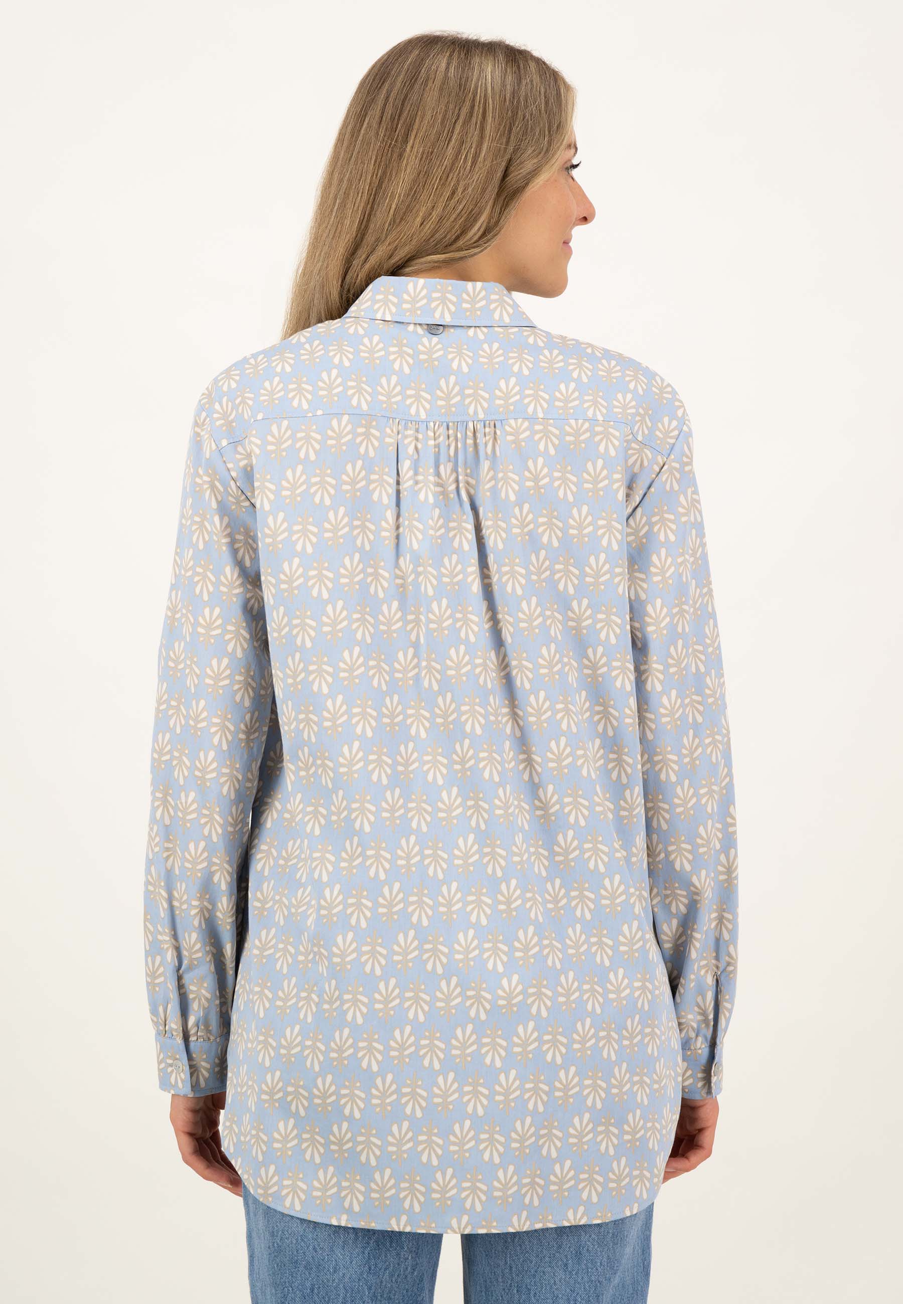 На сайте указаны российские размеры. Современная блузка с воротником-стойкой и рюшами. Повседневный покрой, выразительный принт: эта блуза с рубашечным воротником — настоящая изюминка. Сочетание четкого кроя и эффектного цветочного принта по всей поверхности делает эту блузку незаменимой для всех модниц. Закругленный низ, удлиненный сзади, придает блузке спортивный вид. Тонкие оборки на рукавах и спине — еще один креативный элемент блузки, которая была произведена в Европе из экологически чистых материалов. Модель ростом 177 см Измерения для 44 размера: Окружность груди: 112 см Талия: 110 см Бедра: 119 см Длина по спинке: 78 см. Длина рукава: 60 см.