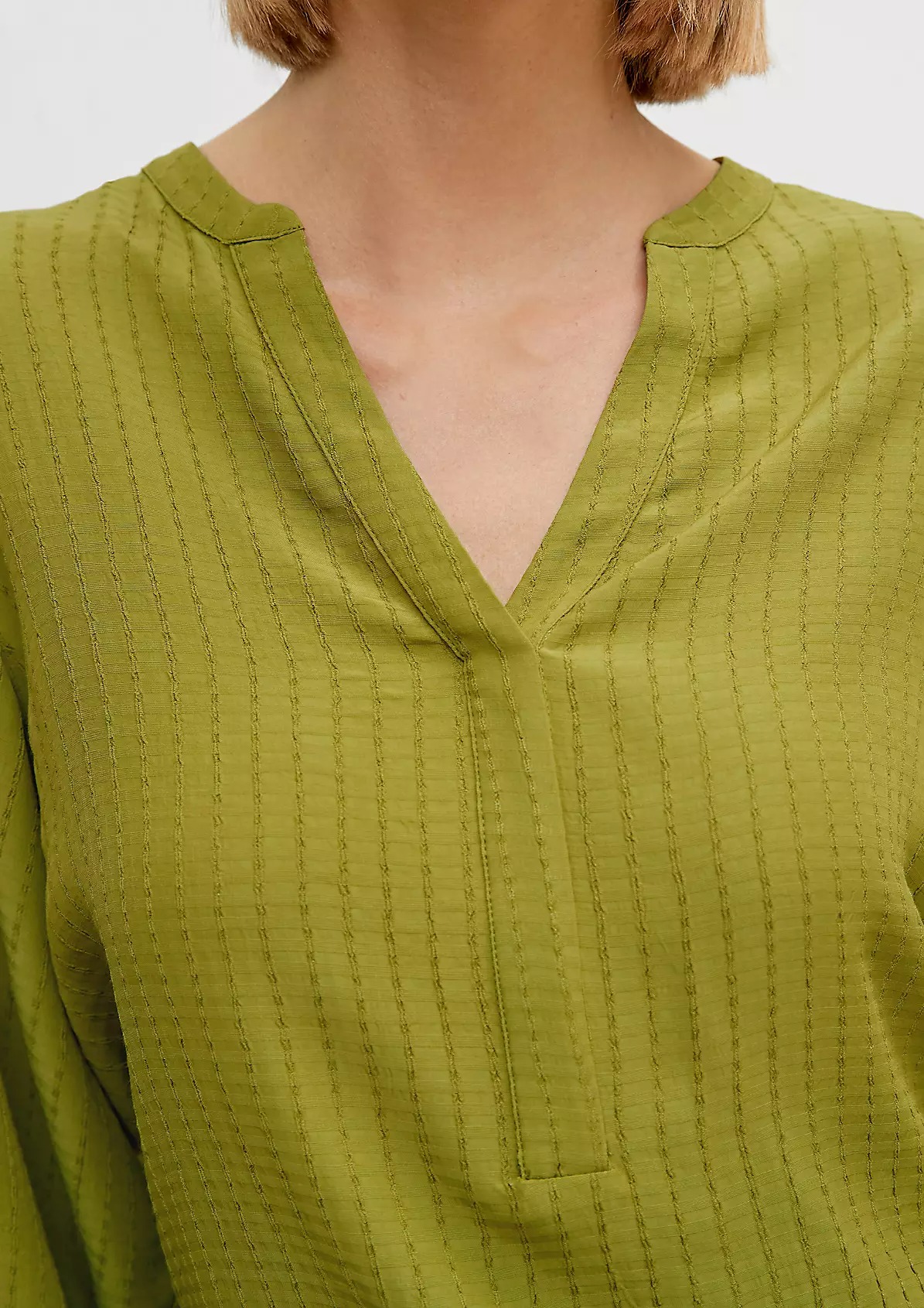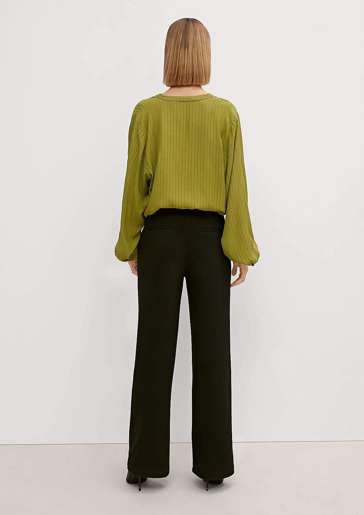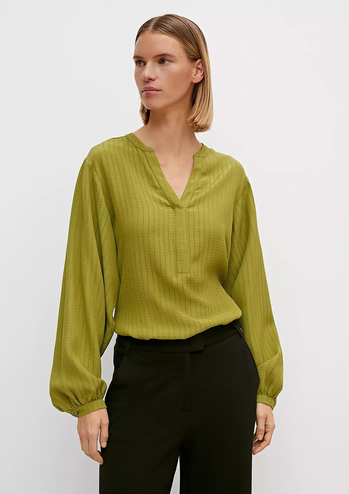 На сайте указаны российские размеры. Блузка из вискозы с узорчатой фактурой. Широкие рукава, длинные рукава, манжеты. Длина спины: 63 см в размере 42. Рост модели 177 см.