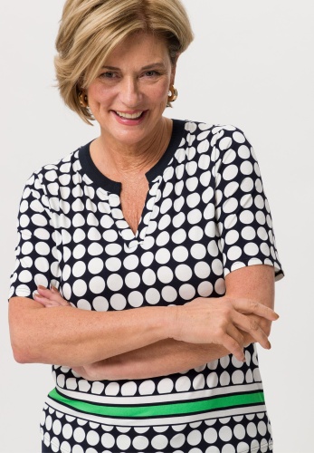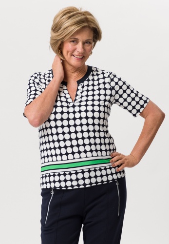 На сайте указаны российские размеры. Повседневная женская рубашка в очень привлекательном виде. Женственная круглая горловина удивляет трикотажной манжетой в тон. Полоса, напечатанная в цвете спереди, также модна и делает принт особенно шикарным.