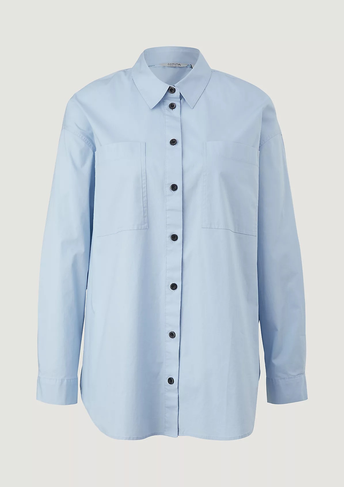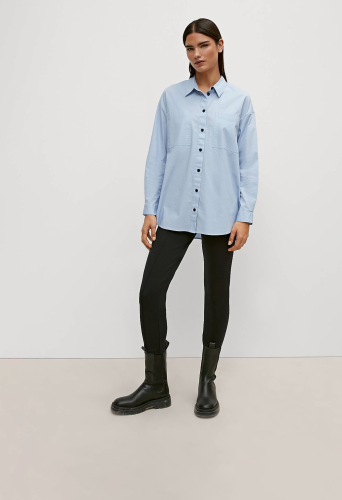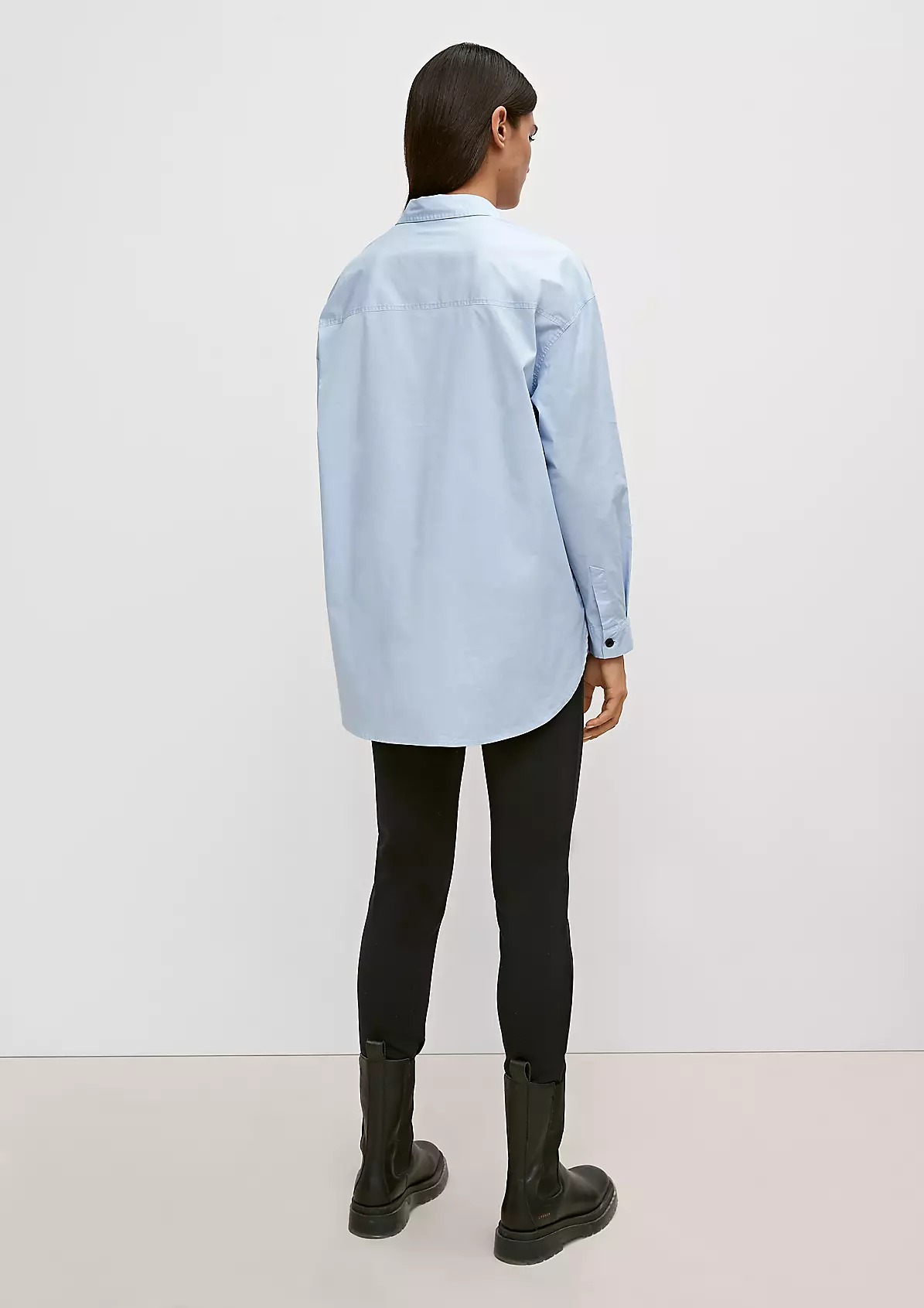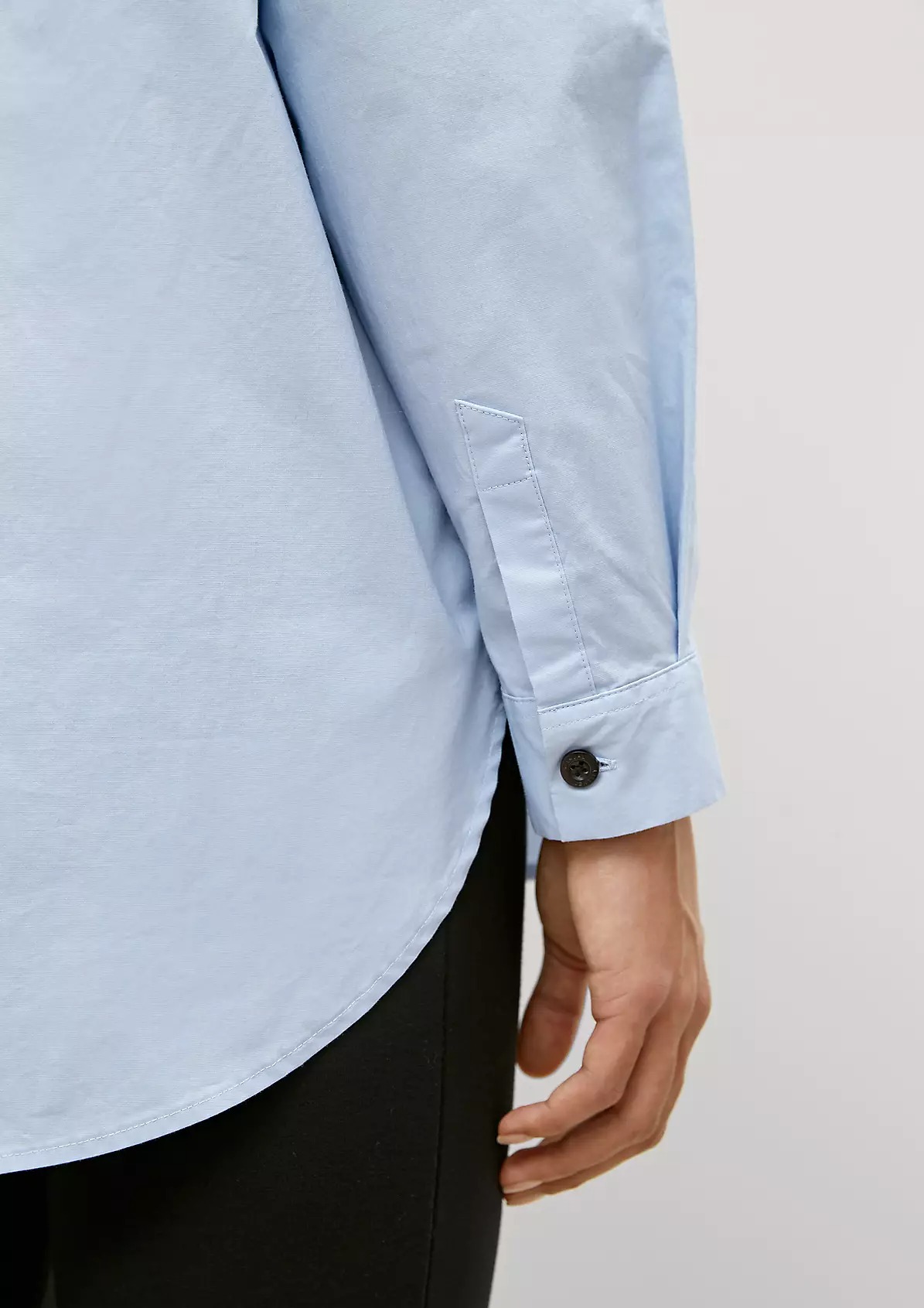 На сайте указаны российские размеры. Блуза свободного кроя с разрезом сбоку и закругленным низом. Заниженная линия плеча, длинные рукава, манжеты. Длина спины 81 см в размере 42 Рост модели 177 см.