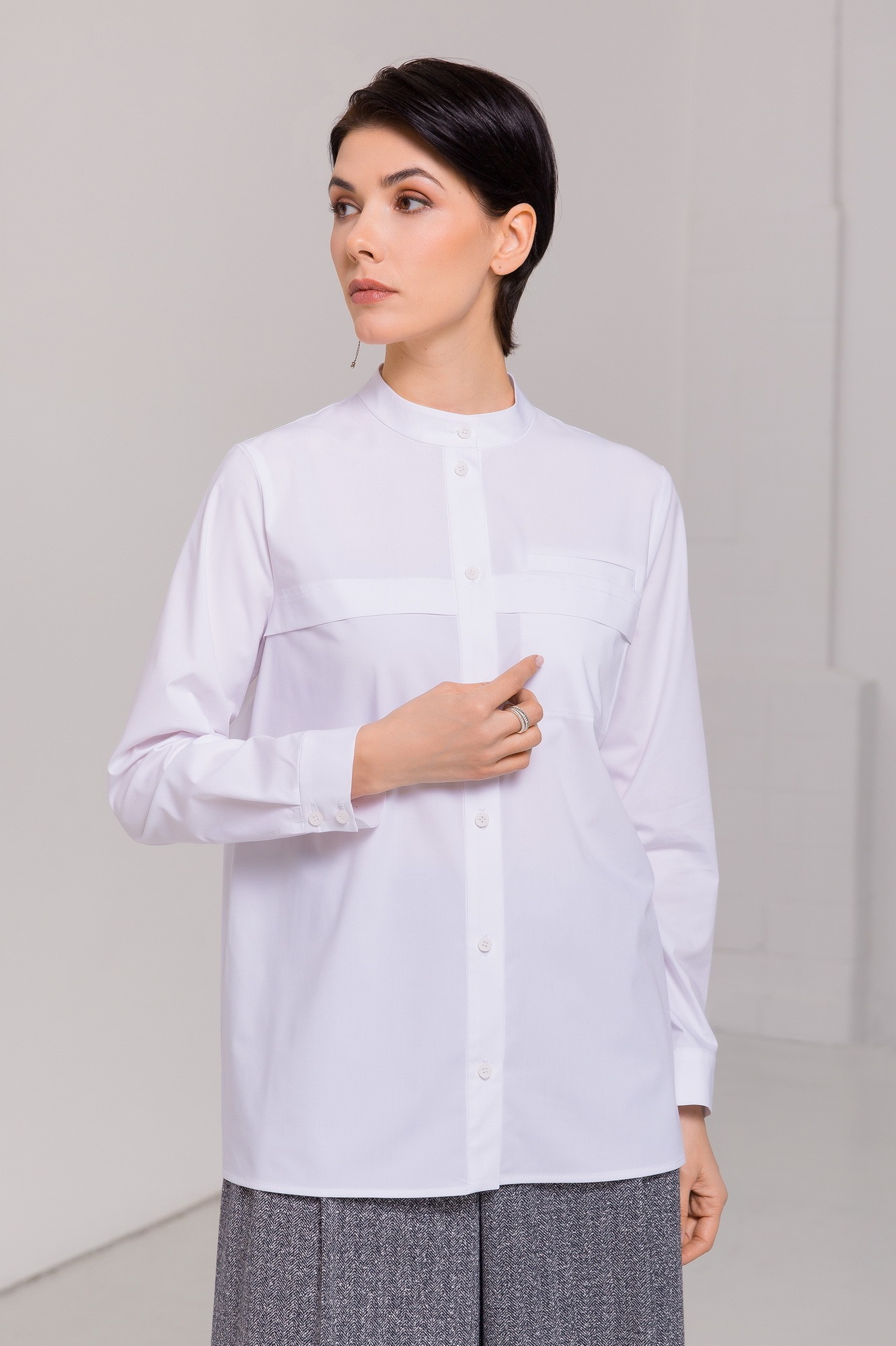 Вариант белой блузы, необходимой каждому гардеробу. Универсальная полуприталенная модель.