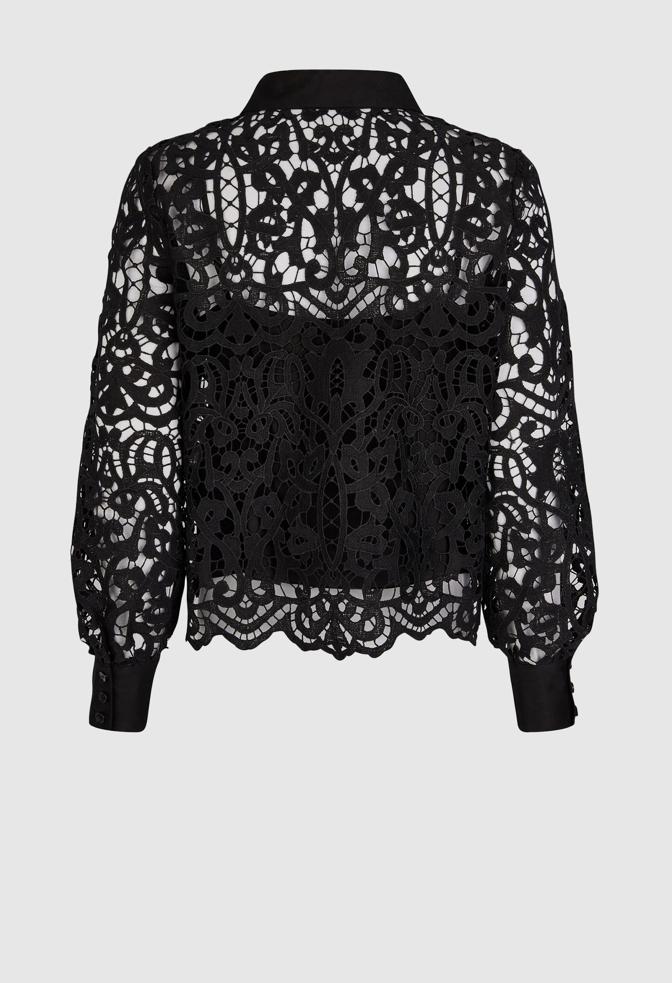 Кружевная блузка с деталями из поплина и эффектным мягким кружевом дополнена подходящим топом-спагетти в тон. Это создает образ с вау-эффектом. Продуманные детали, такие как подол с фестончатым краем и манжеты с разрезом, гармонично дополняют благородный дизайн.