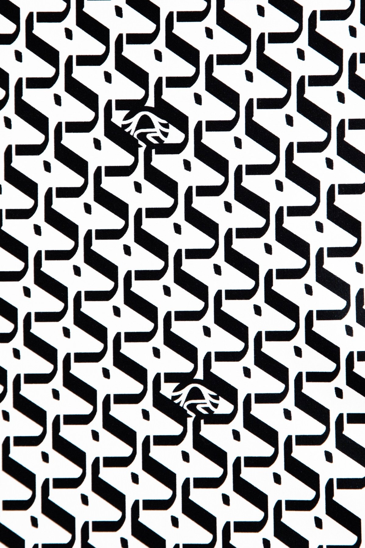 Блузка без шнуровки изготовлена из тонкого технического трикотажа с графическим принтом по всей поверхности и интегрированными логотипами Sportalm. Свободный силуэт завершают отрезные рукава 3/4. Классический воротник рубашки заканчивается небольшим разрезом посередине спереди. Края подола, края рукавов и воротника открыты, что создает эффект поношенности. В боковом шве разрезы, спинка удлинена. Длина спины размера 42 - 76,5 см.