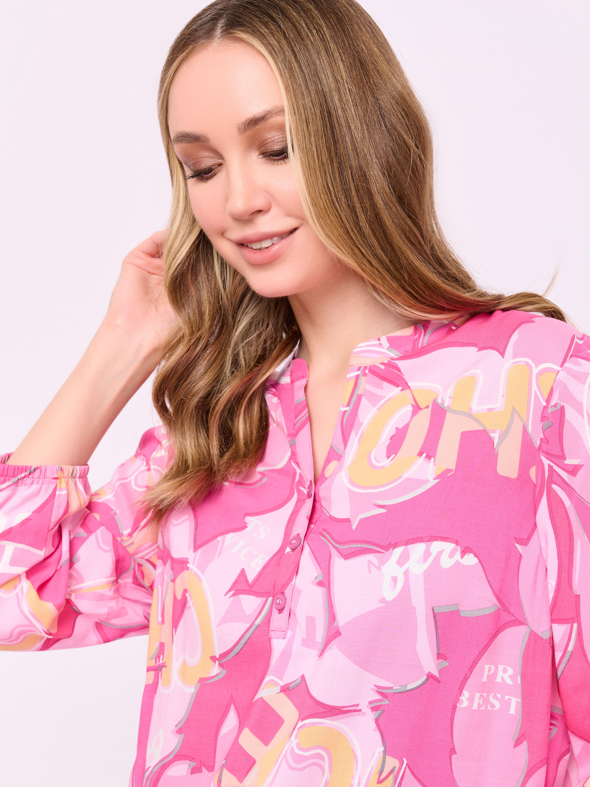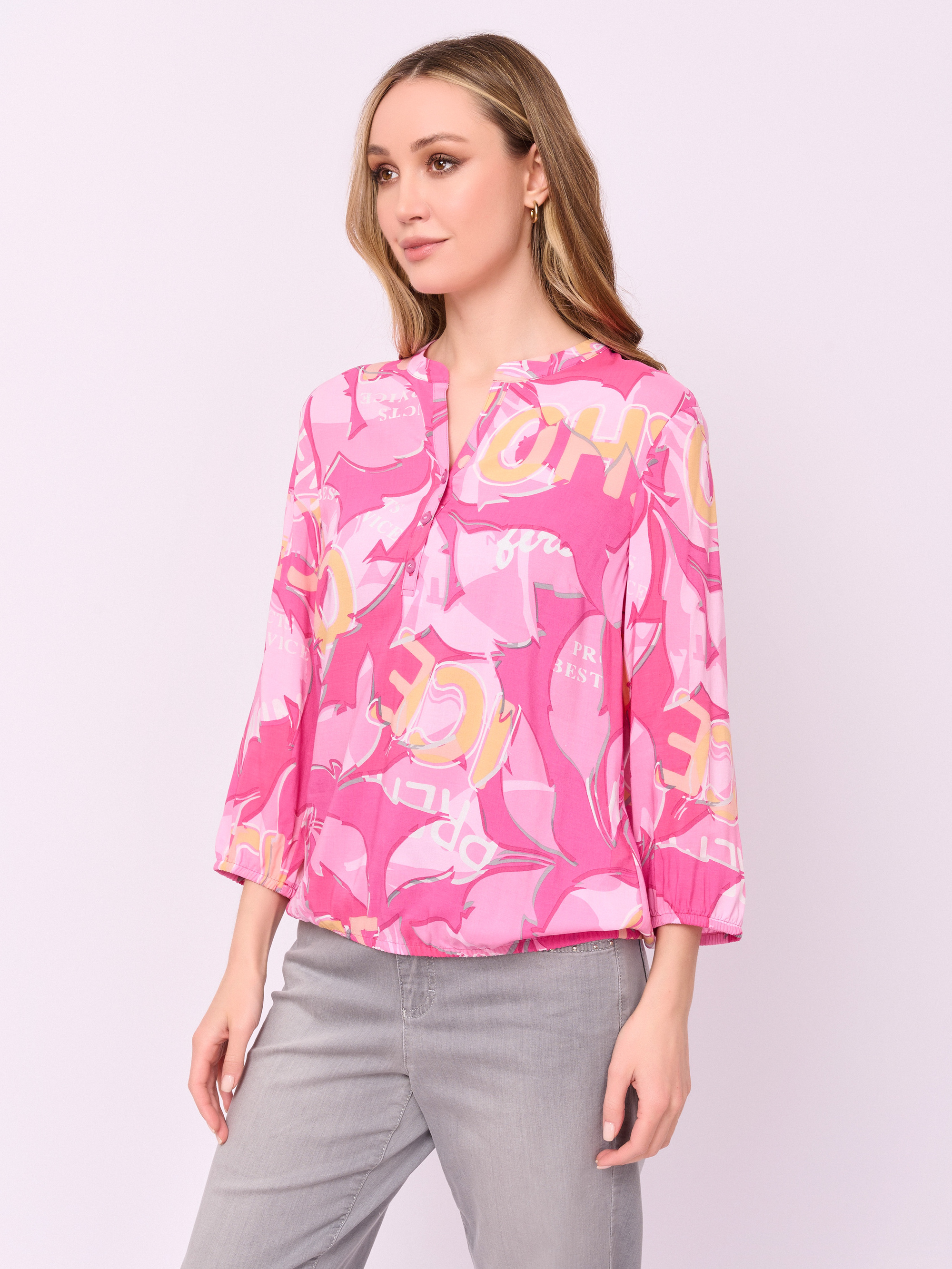 Детали: застежка пуговицы, пуговицы, рукава 7/8, покрой прямой, рисунок абстракция, манжеты на резинке. Длина по спинке: 59 см.
