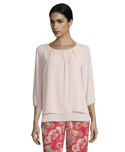 Свобода в тренде! Летящая блуза. Оригинальный крой этой двухслойной модели создает красивые драпировки. Круглый вырез горловины, рукава 3/4. Эта блуза создает романтический образ как с юбкой, так и с брюками.