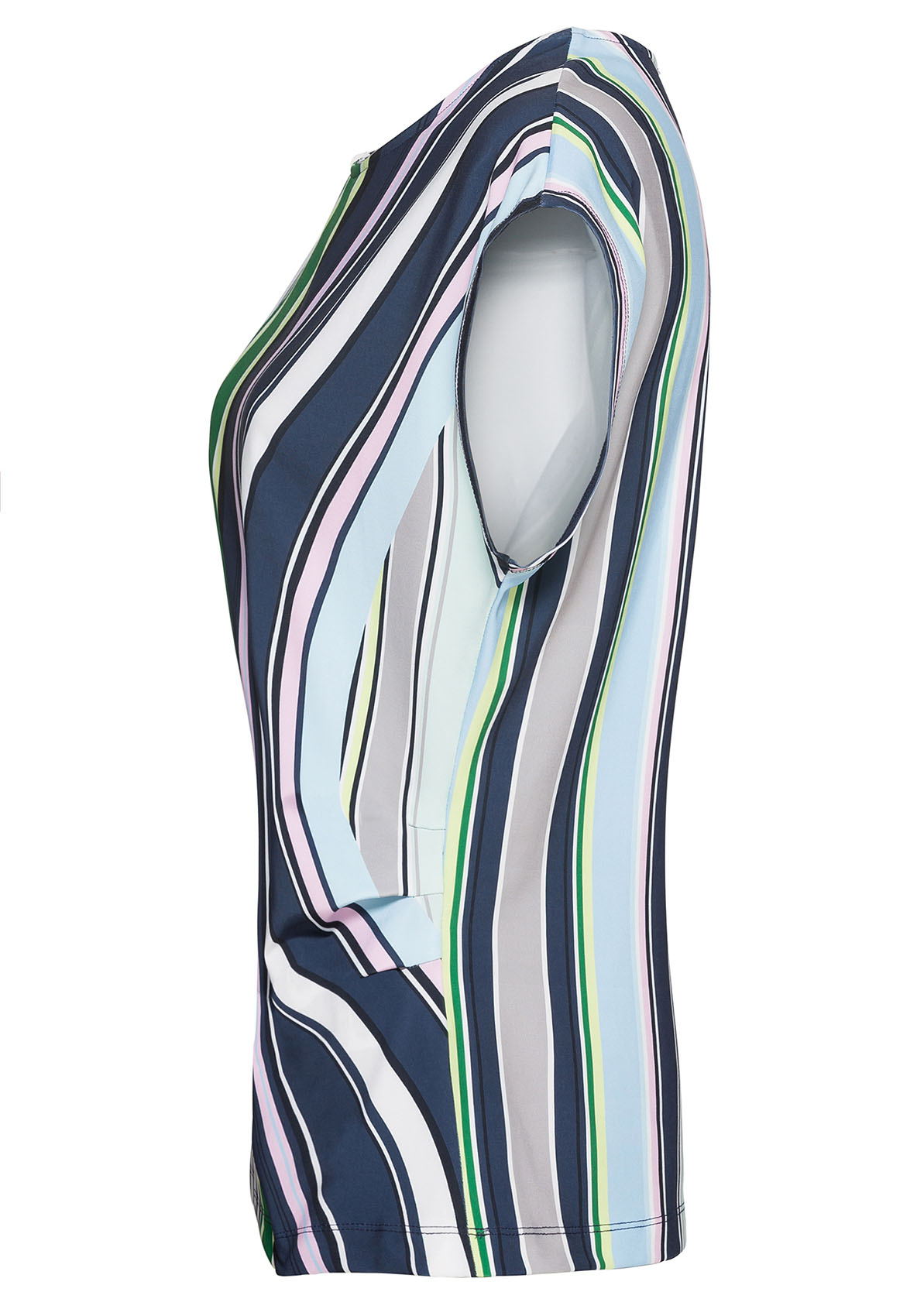 Полосы повсюду - модные акценты с блузой Julie! Блуза имеет стильный дизайн в полоску и подходит для любого случая. Легкая в уходе мягкая ткань джерси с эластаном очень удобна в ношении. Цветные полосы и складки сбоку создают вау-эффект. Цельнокроеные рукава и круглый вырез горловины придают изделию завершенный вид. • блуза с цветными полосами и складками сбоку • легкая в уходе ткань джерси с эластаном • круглый вырез, цельнокроеный рукав • слегка приталенный силуэт • длина около 64 см