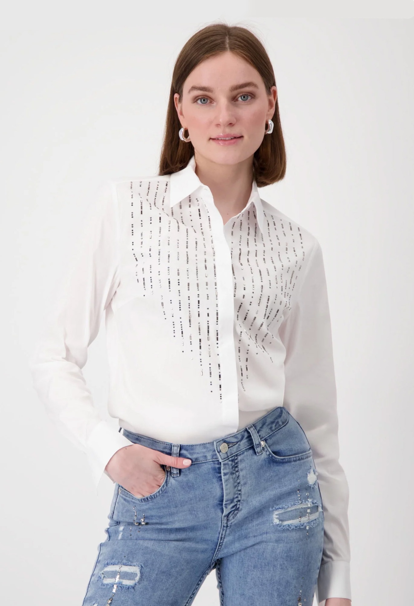 Эта стильная рубашка MONARI из высококачественной смеси хлопка поражает сверкающими стразами и эластичным материалом.