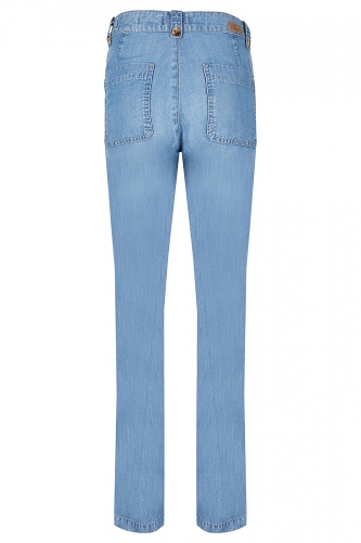 Комфорт на все случаи жизни! Брюки свободной формы чинос выполнены из 100% тенсела. Средняя посадка, 4 кармана с декоративной отстрочкой, контрастные пуговицы на шлевках. Идеальным довершением образа будет блуза-рубашка и туфли-лодочки.
