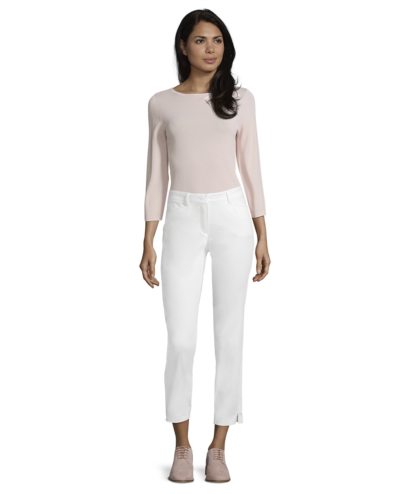Укороченные брюки обращают на себя внимание. Универсальная средняя посадка, прямой крой. Небольшие разрезы по низу брючин. Декор стразами в области бедер придяет образу нотку гламура. Приятный к телу материал из хлопковой смеси обеспечивает комфорт в ношении. В сочетании как с футболкой, так и с блузой эти брюки создают стильный современный образ.