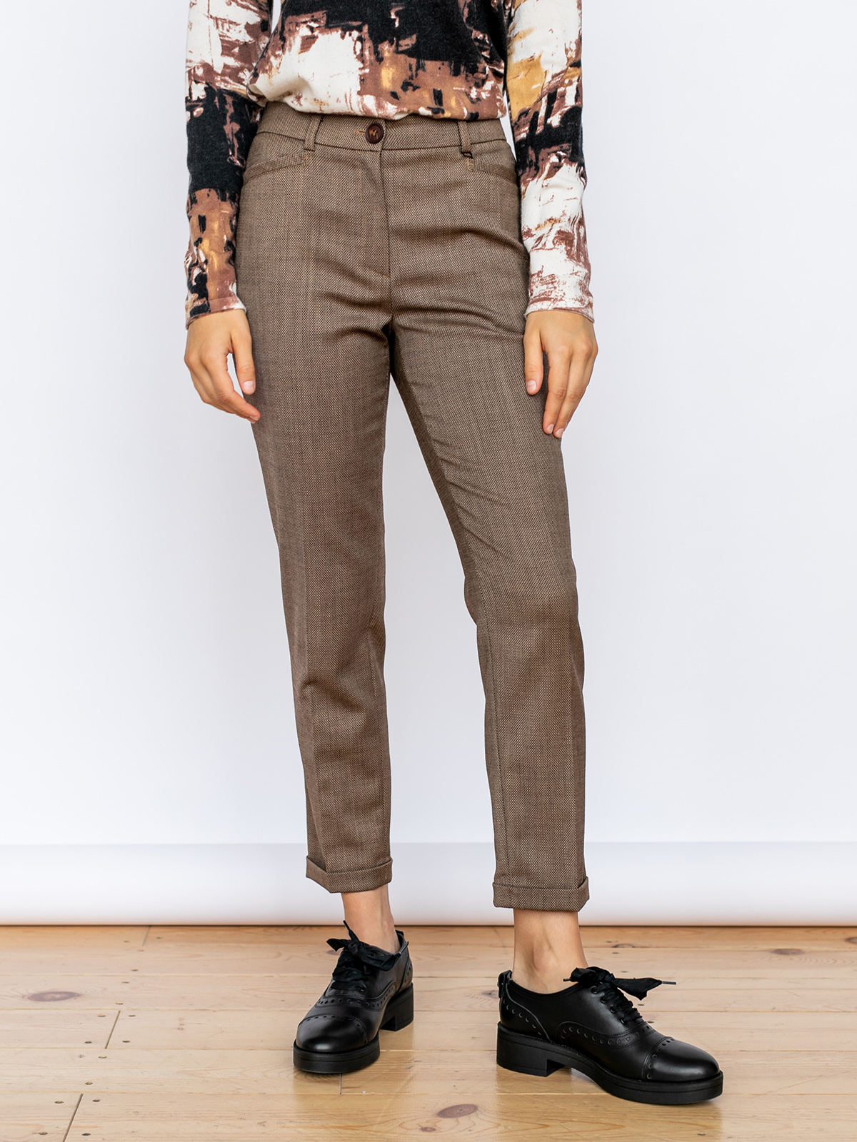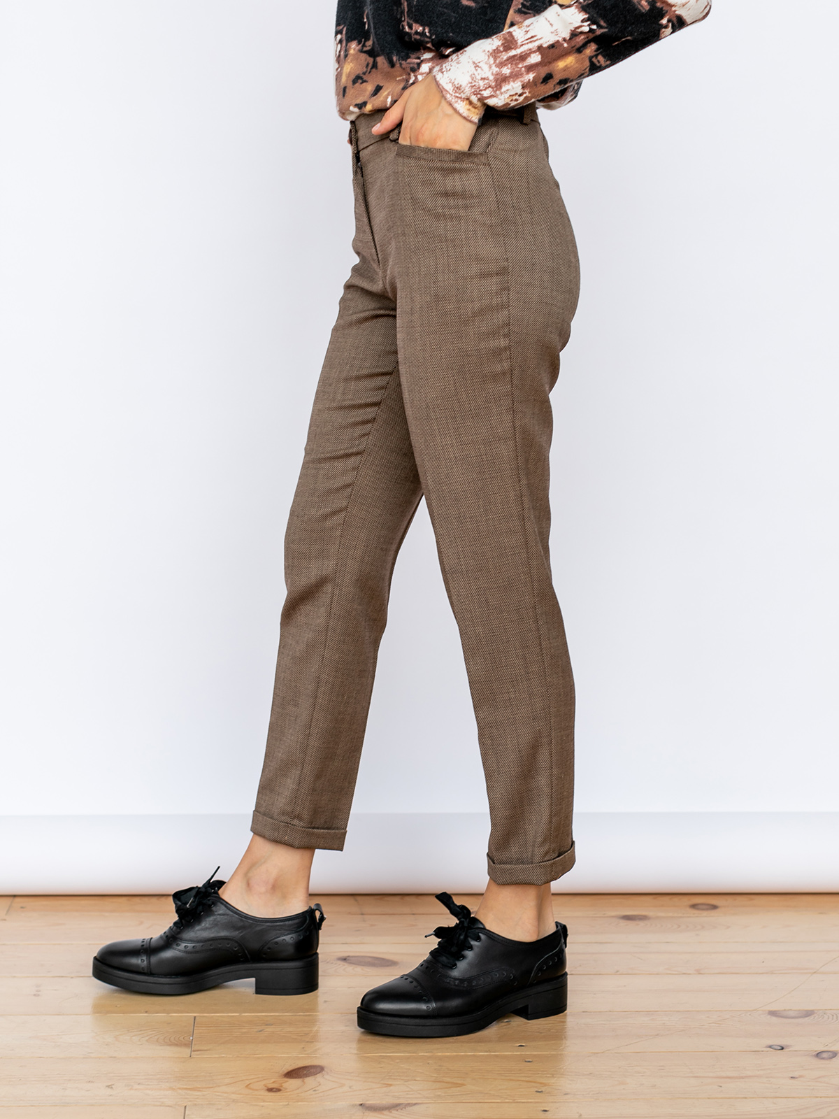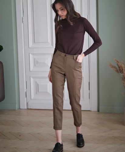 Брюки трендовой расцветки станут элементом капсульного гардероба, предполагают множество различных сочетаний. Длина до щиколотки, стрелки визуально увеличивают рост. Комфортная средняя посадка, замок-молния спереди, карманы спереди и один врезной карман с листочкой сзади.
