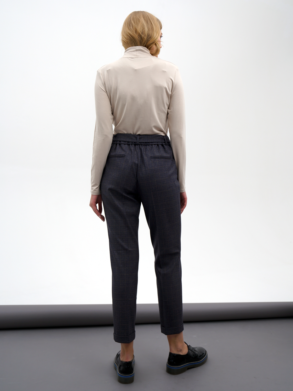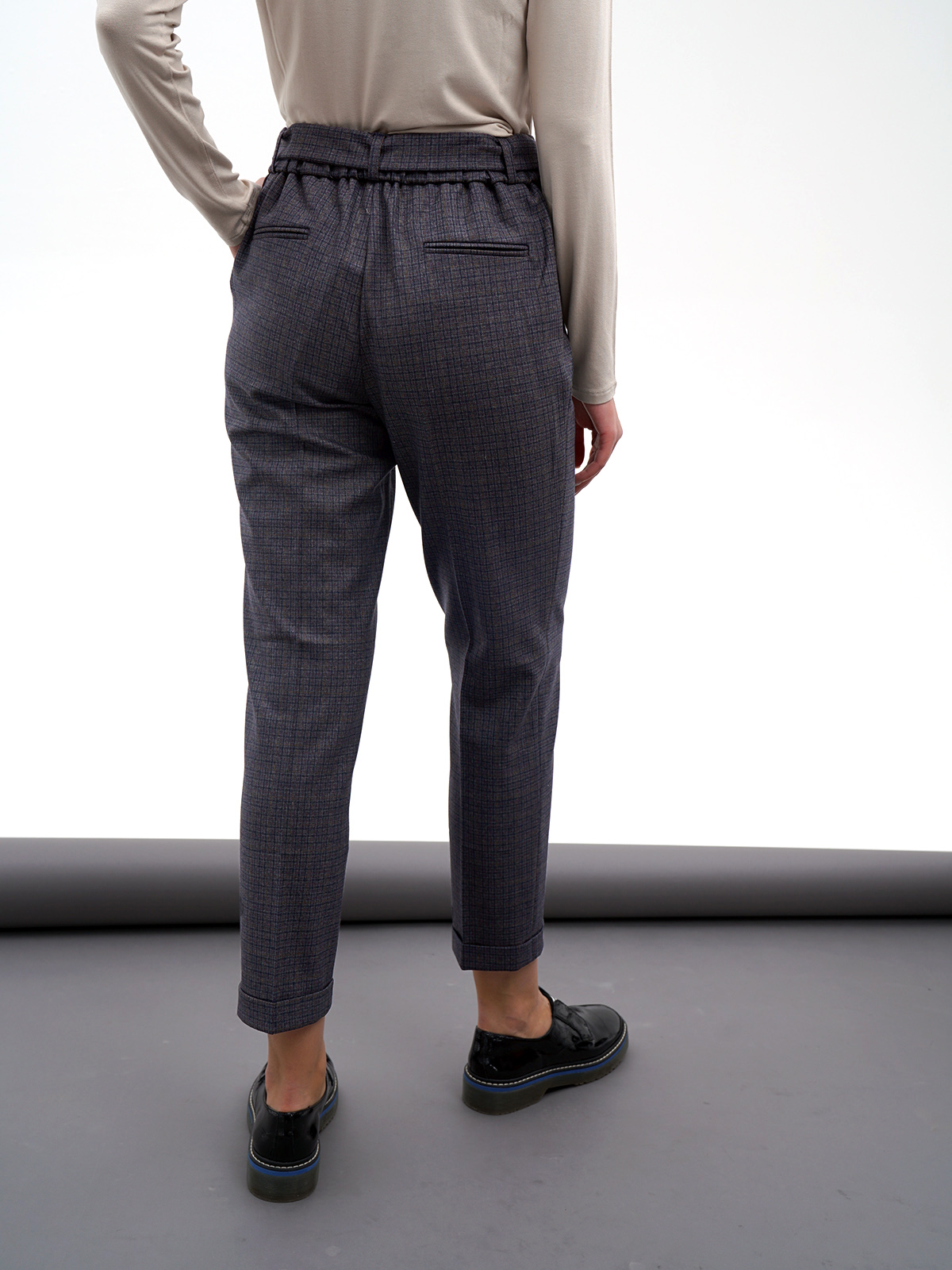 На сайте указаны российские размеры. Укороченные брюки в клетку подходят как для делового, так и для городского повседневного образа. Стрелки визуально вытягивают рост. Комфортная средняя посадка, притачной пояс со шлевками. В комплекте идет тканевый пояс из основного материала изделия. Крой: стильные брюки актуальной длины 7/ 8 имеют высокую посадку, которая подчеркивает линию талии и визуально делает ее тоньше. Прямой зауженный силуэт создает идеальную вертикаль, которую усиливают и стрелки – образ становится вытянутым и стройным. Удобные карманы по бокам позволяют спрятать в себя самые необходимые предметы – телефон, ключи и банковские карты. В задней части брюк присутствуют нефункциональные карманы-рамочки, которые добавляют женственности. Отделка: завязной пояс – украшение модели. Его можно завязать как стильным узлом, там и романтичным бантом и подчеркнуть красоту талии. В нижней части модели расположены манжеты, которые подчеркивают изящество щиколоток.