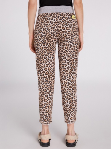 Укороченные трикотажные брюки в анималистичном дизайте. Спортивный стиль, силуэт slim. Притачной пояс с кулиской, средняя посадка.