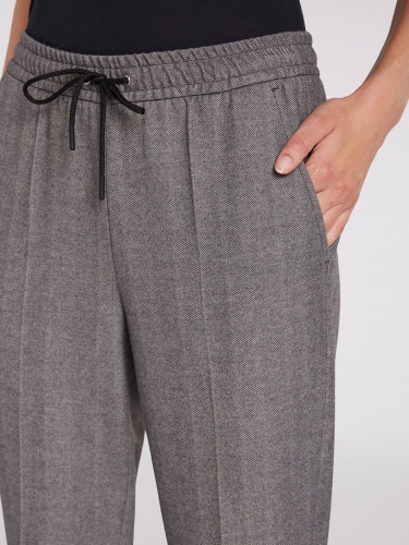 Брюки прямого кроя со стрелками. Притачной эластичный пояс с кулиской, также эластичные резинки по низу брючин. Брюки комфортны в ношении и подойдут для образа в повседневном городском стиле.