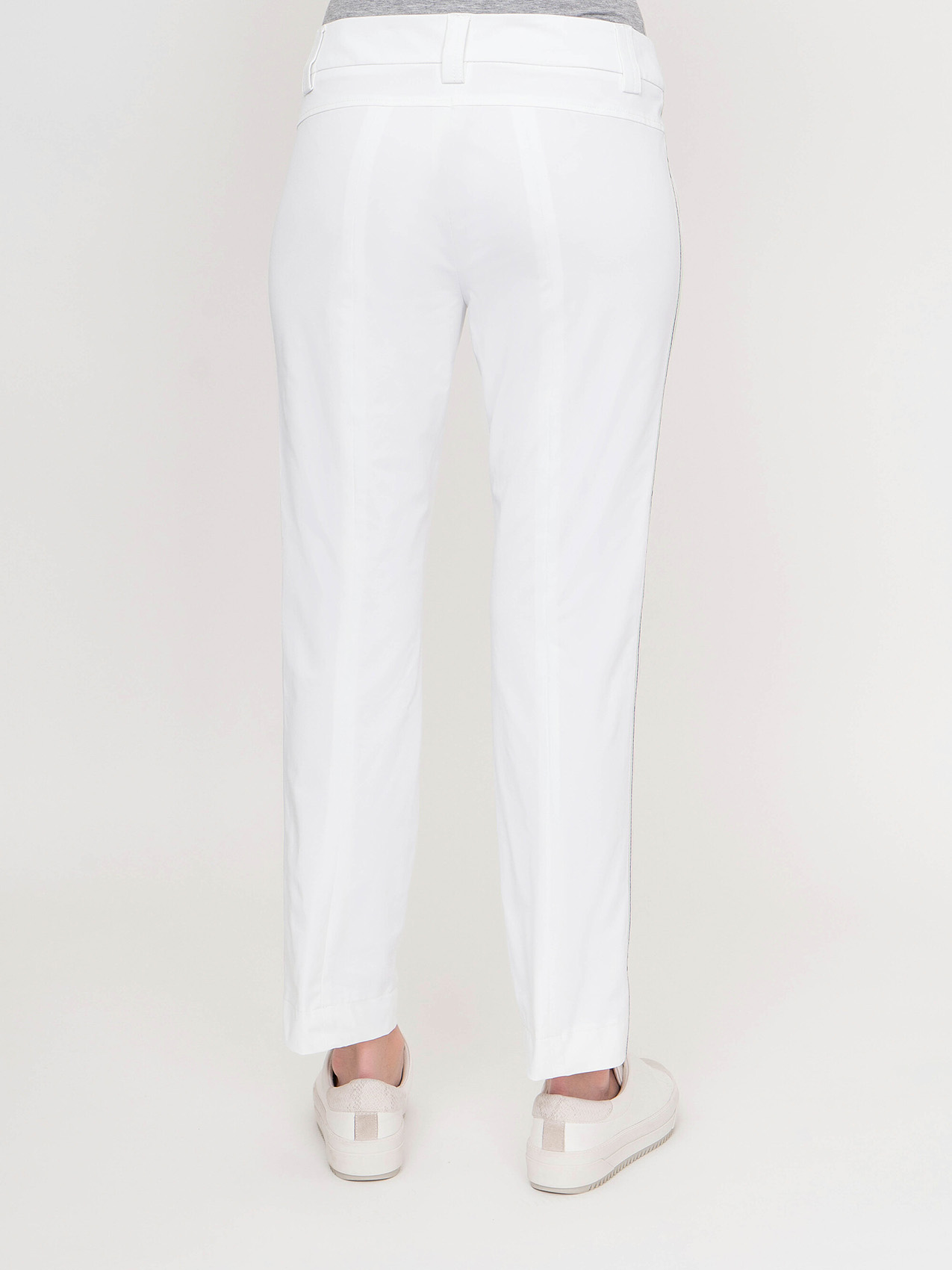 Светлые брюки - идеальный вариант для теплого сезона. Брюки средней посадки, прямого кроя. Декоративная тесьма по бокам, боковые карманы. Эта модель - универсальная пара для любого модного образа.