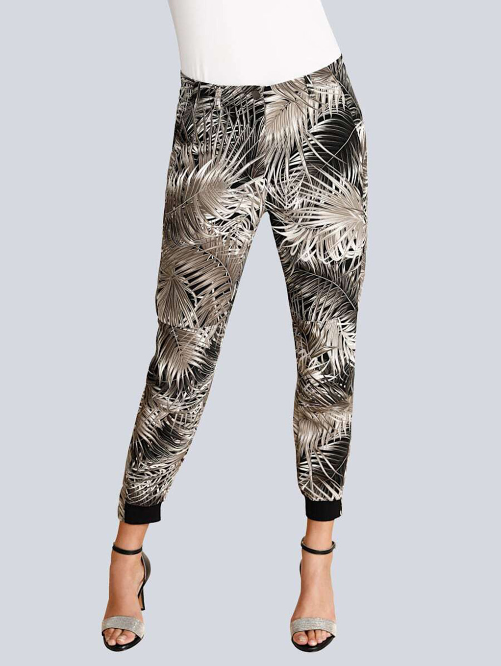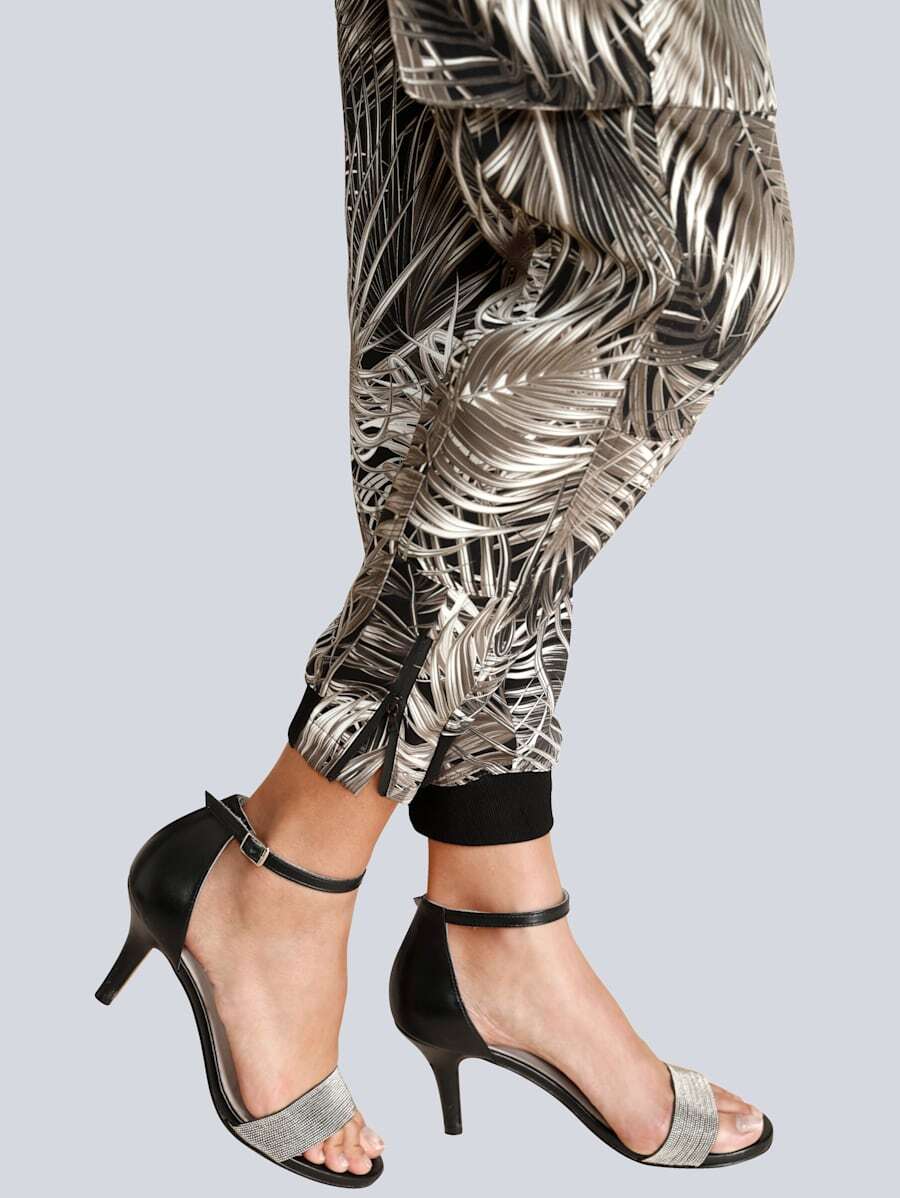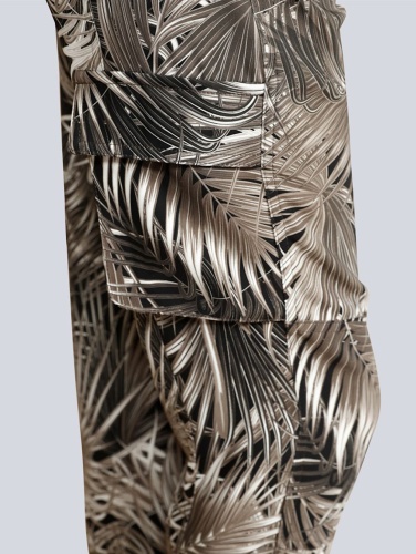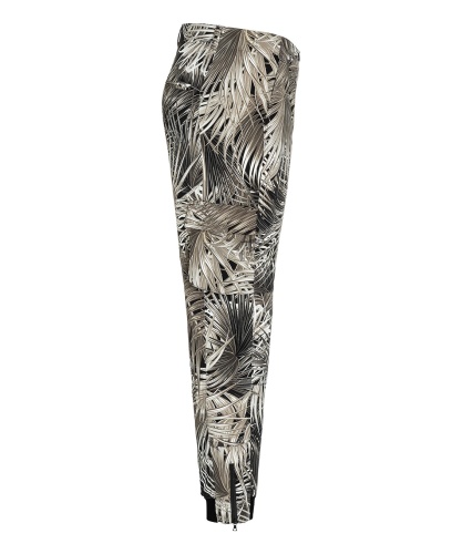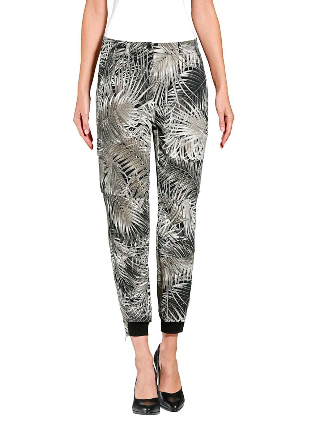 Брюки в трендовом принте с тропическими мотивами - наш модный фаворит! Зауженный книзу силуэт, средняя посадка, застежка-молния спереди, накладные карманы, манжеты и молнии по низу брючин. Эти брюки гарантируют создание актуального образа в сочетании с лаконичным вариантом верха и любой обувью.