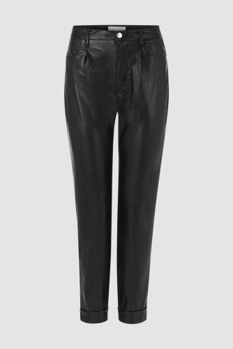 Укороченные брюки из экокожи свободного кроя. Дизайн включает удобные боковые карманы, практичные шлевки для ремня и застежку-молнию. Носите с женственными блузками и лодочками, чтобы создать шикарный деловой образ или с белыми кроссовками и футболкой для городского кэжуал стиля.