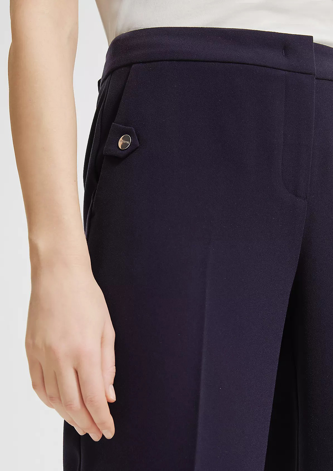 Однотонные шорты в базовом темно-синем оттенке – идеальный вариант низа для повседневного образа в теплое время года. Длина до колена позволяет надеть шорты в офис или на встречу, если сочетать с верхом в деловом стиле. Комфортная высокая посадка. Застежка на скрытую молнию и пуговицу. Боковые карманы в шве, сзади прорезные карманы с листочкой.