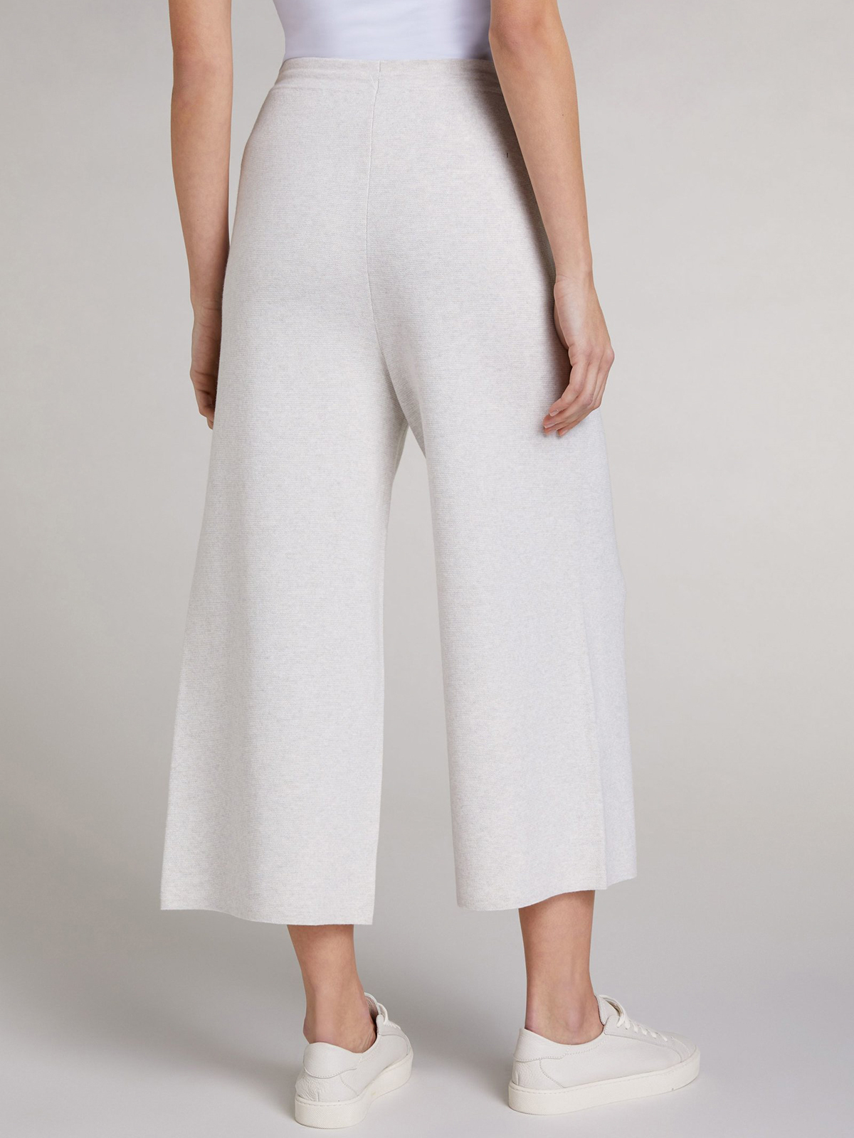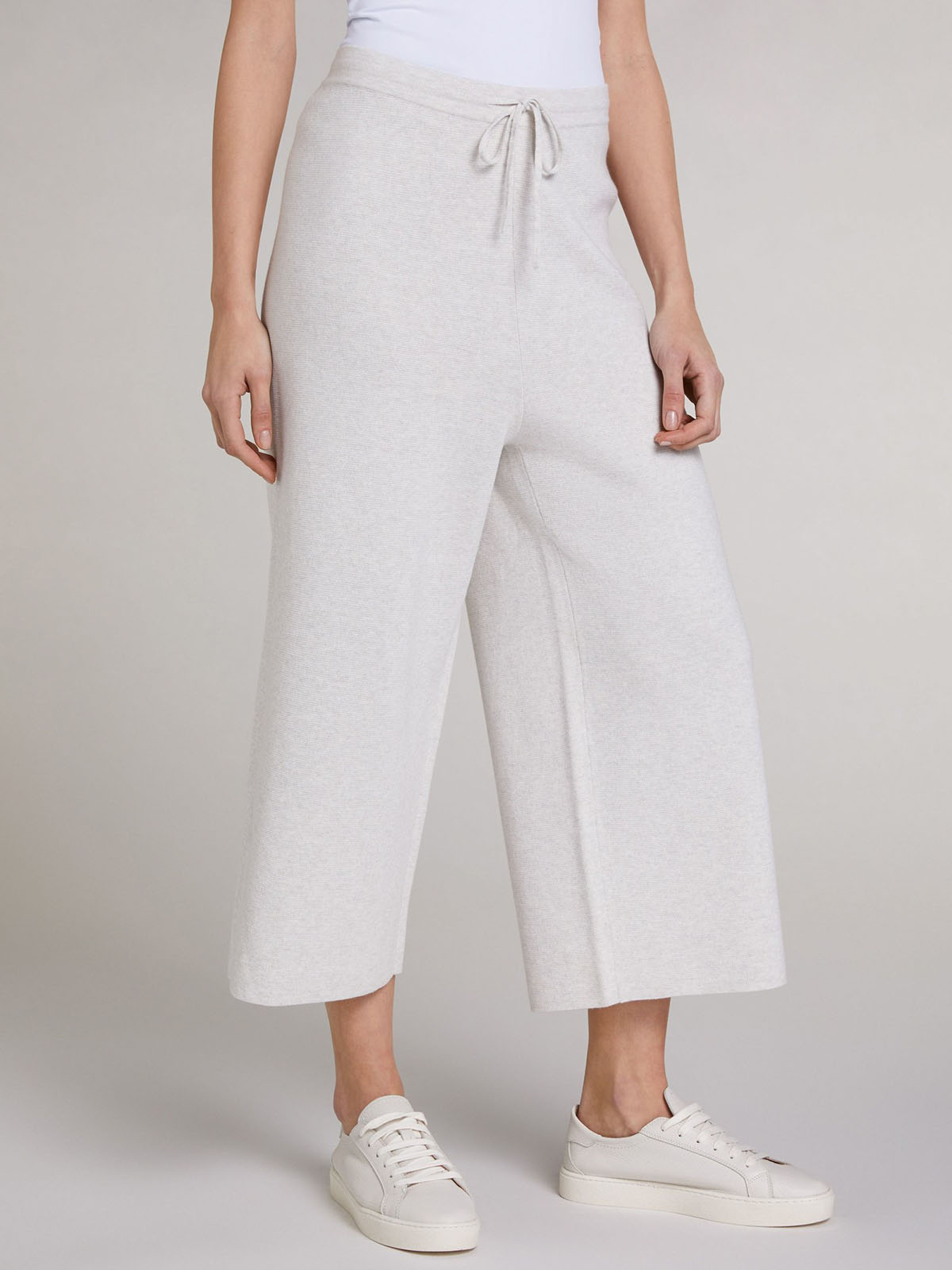 Однотонные кюлоты в нежной расцветке для создания уютного и стильного образа. Эластичный пояс на кулиске обеспечивает комфорт ношения. Брюки отлично сочетать в монохромном образе с пуловером из этой коллекции.