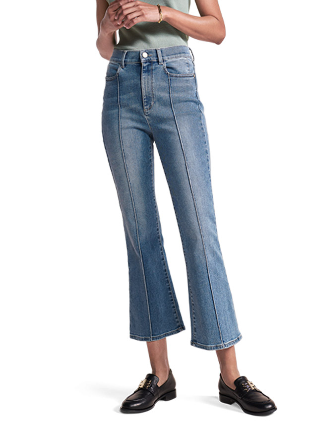 Зауженная модель, в котором штанины слегка расклешены. Стильность джинс добавляет центральный шов.