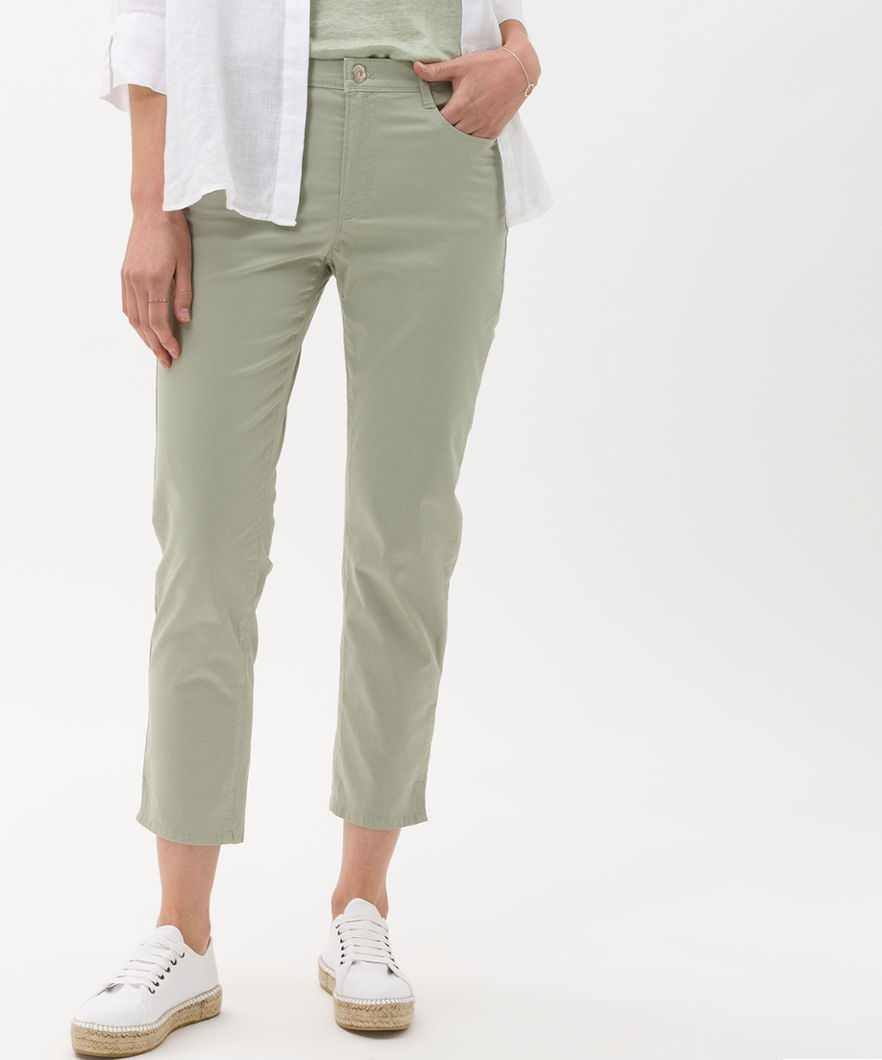 Укороченные женские брюки с пятью карманами.