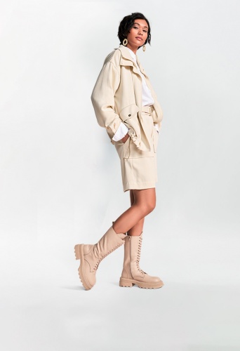 Шорты-бермуды из прочного твила. Большие накладные карманы спереди, узкие карманы с клапанами сзади. Модель прямого кроя с тканевым ремнём.
