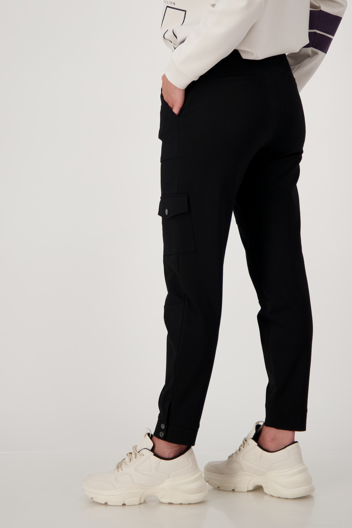 На сайте указаны российские размеры. Брюки в стиле джоггер от monari сочетают в себе непринужденный стильный дизайн и высокую функциональность. Удобная эластичная ткань гарантирует оптимальную посадку и максимальную свободу движений, а мягкая вискозная ткань, смешанная с полиамидом, особенно удобна. Накладные карманы спереди, большой карман с клапаном на кнопке на уровне колена и фальшивые прорезные карманы сзади незаметно выделяются красивыми продольными и поперечными разделительными швами спереди и придают модели изюминку. Рост модели 175 см Длина по внутреннему шву 68 см.