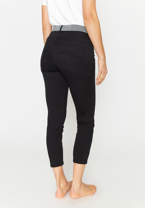 На сайте указаны российские размеры. Джинсы зауженного кроя с контрастной отделкой. Облегающий крой и укороченные штанины идеально подчеркивают силуэт. Благодаря модному дизайну и однотонному стилю джинсы идеально сочетаются с необычными узорами и яркими цветами. Кроме того, эти джинсы особенно приятны для кожи из-за высококачественной смеси хлопка. Эластичный материал и частично эластичный пояс также делают их удобными и обеспечивают оптимальную свободу движений.