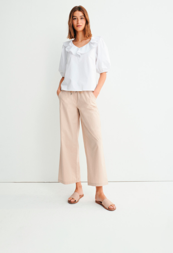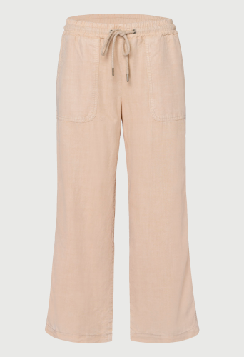 На сайте указаны российские размеры. Повседневные летние брюки MORE & MORE из струящегося качественного лиоцелла. Модель прямого силуэта, большие накладные карманы. Длина внутренней стороны ноги в размере 42 = 68см Рост модели 181 см