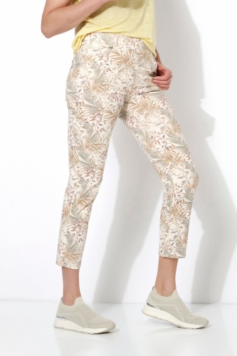 На сайте указаны российские размеры Брюки длиной 7/8 с креативным натуральным принтом, удобным поясом на кулиске, высокой талией, выполнены из модного хлопка. Длина по внутреннему шву: 72 см. Рост модели 180см.