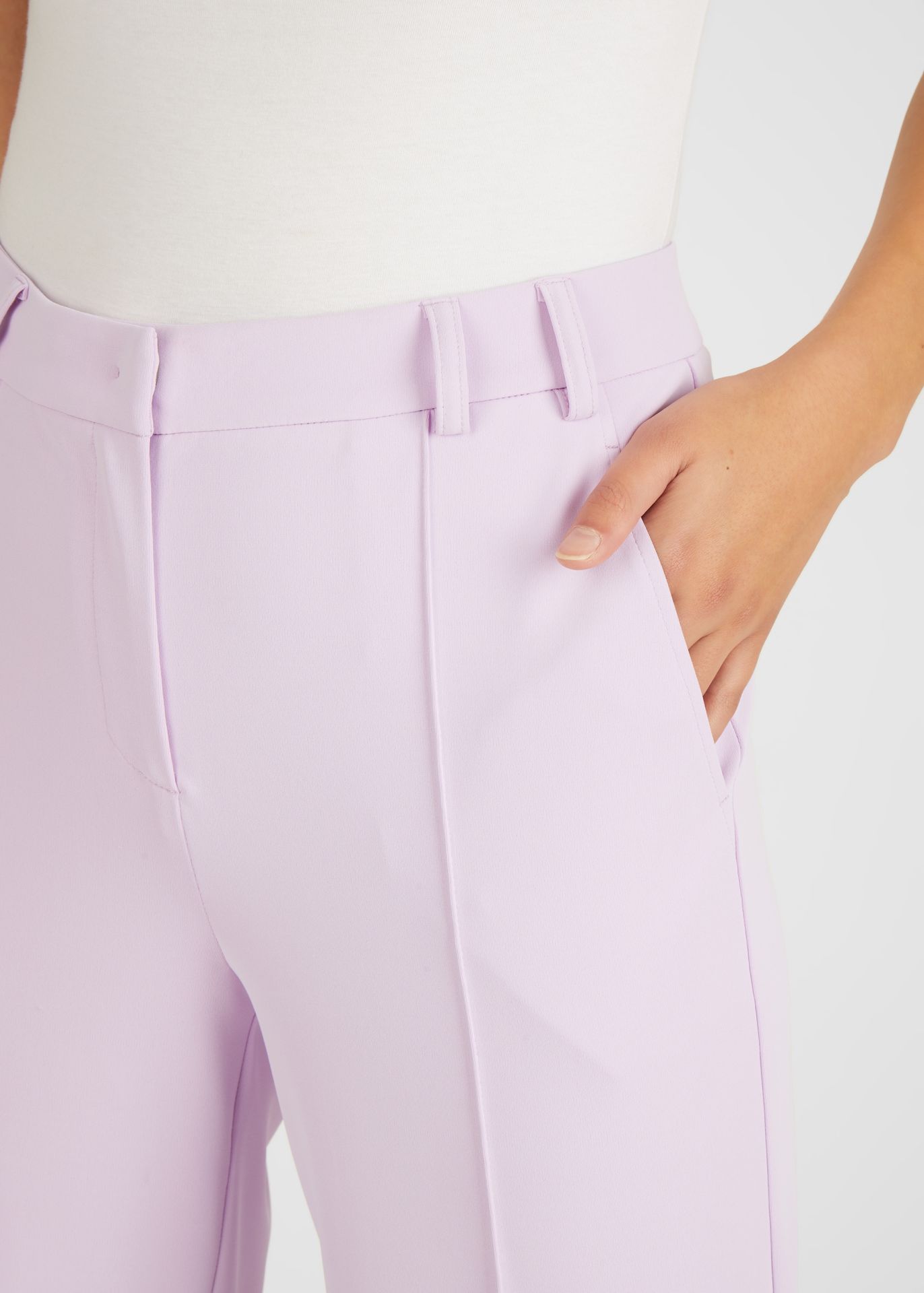 На сайте указаны российские размеры. Однотонные брюки впечатляют своим элегантным видом. Благодаря широкому крою брюки удобны в носке, а декоративные швы завершают образ. Внутренний шов в размере 44: 78 см. Рост модели 176 см.