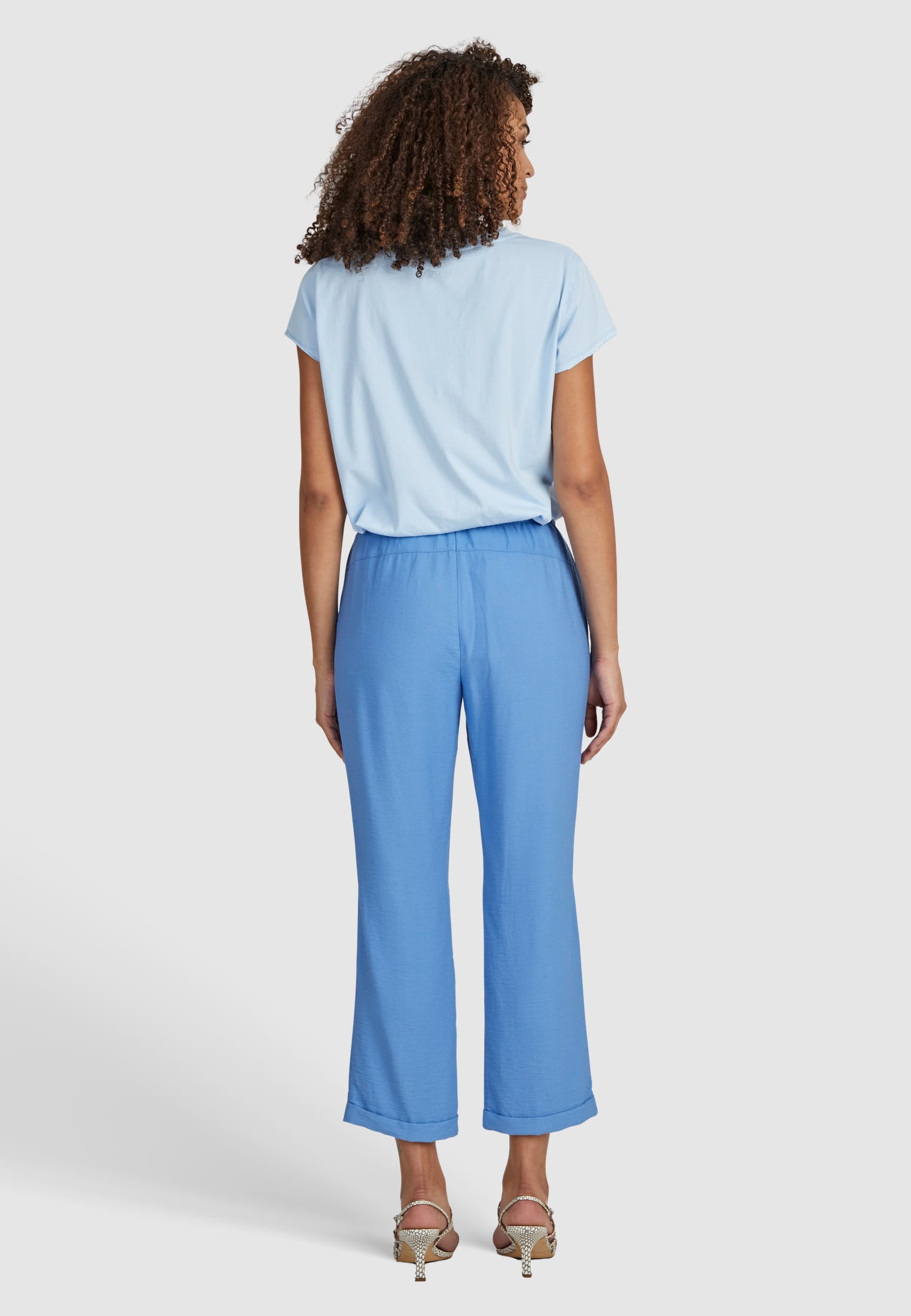 Брюки из структурированной вискозы имеют очень удобную посадку благодаря манжетам-джоггерам. Декоративные стеганые вытачки спереди делают образ неповторимым.
