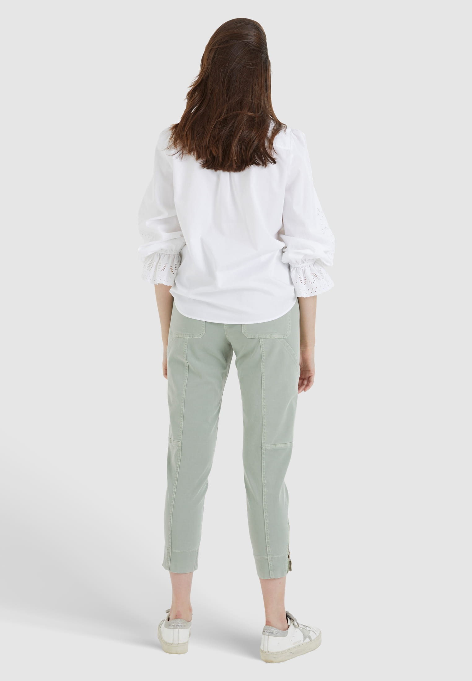 Современные брюки с высокой талией из линии Eco Friendly отличаются контрастными швами и зауженными штанинами. Подол регулируется застежкой-молнией. Материал содержит устойчивое содержание лиоцелла.