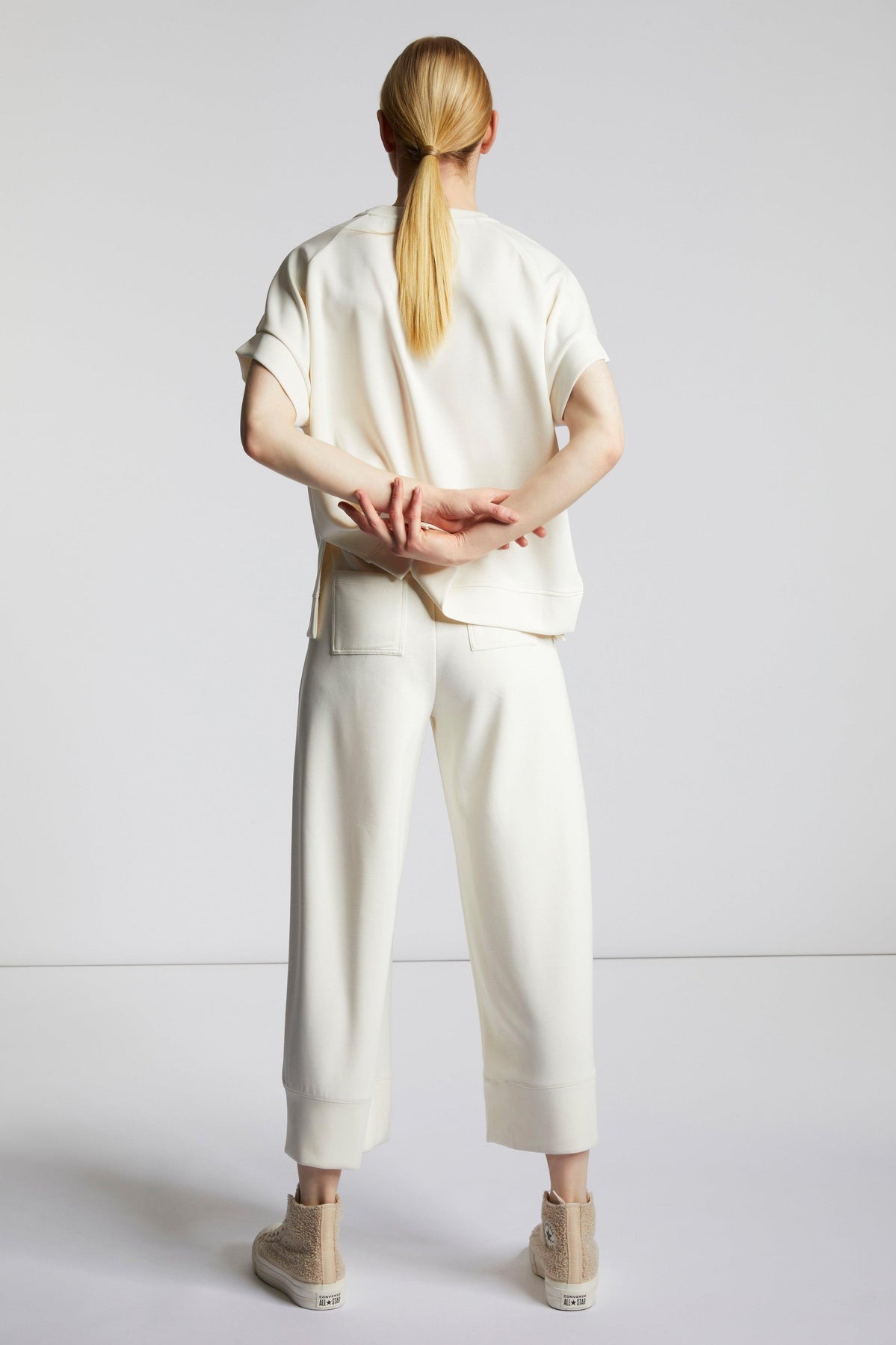 Эти брюки-кюлоты благодаря приятному мягкому материалу выглядят убедительно непринужденно. Эластичный пояс обеспечивает комфорт. Два боковых кармана и накладные карманы сзади подчеркивают свободный крой. Пришитая тесьма по краю красиво привлекает внимание.