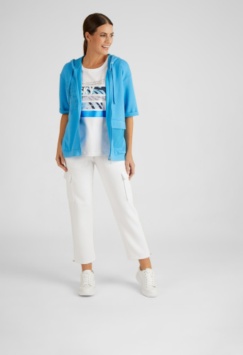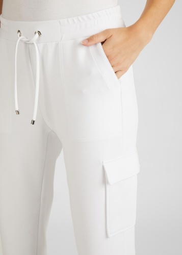 Спортивные штаны с эластичным поясом. Брюки можно варьировать благодаря эластичному поясу с кулиской, а кулиски на штанинах обеспечивают идеальную посадку. Накладные карманы на бедрах придают модели современный вид. Носите брюки небрежно с футболкой и кроссовками. Внутренний шов в размере 46: 67 см.
